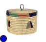 Kaisa-Gras, Palmblatt, Jute-Umwicklung, herausnehmbarer Wäschesack aus Baumwolle, natur/blau/türkis/orange, H 50 cm, Ø 40 cm BD5-20-846 Lieferant: El Puente