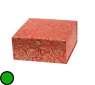 Geschenkbox zusammenklappbar, mit Knopfverschluss, Paisleymuster, rot/gold, handgeschöpftes Recyclingpapier, 24x24x10,5