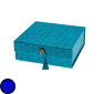 Geschenkbox zusammenklappbar, mit Knopfverschluss, Blume des Lebens, blau, handgeschöpftes Recyclingpapier, 15x15x5; REDUZIERT