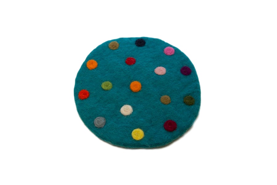 Spotty - Filz Untersetzer rund ca. 20 cm - mit bunten Tupfern - Grundfarbe: türkis