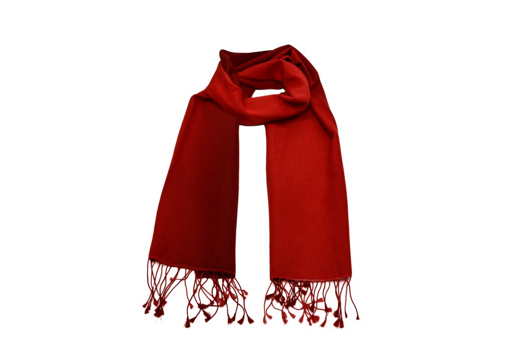 Roter Schal aus Wolle und Seide mit farbigem Verlauf. Ein Schal passend zu vielen Tönen