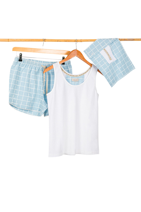 100% Bio-Baumwolle, Oberteil in Single-Jersey Qualität, Hose aus fein gewebtem Stoff 100% Bio-Baumwolle von unserem GOTS-zertifiziertem Handelspartner Rajlakshmi, verpackt im Geschenkbeutel aus Stoff im Streifen-Print der Pyjamahose, unifarbenes Langarmshirt mit V-Ausschnitt mit dezenter Verzierung, Hose aus fein gewebtem Stoff mit geradem Bein, dezente Verzierung am Hosenbund, stoffbezogener Gummibund, zusätzliches Zugband