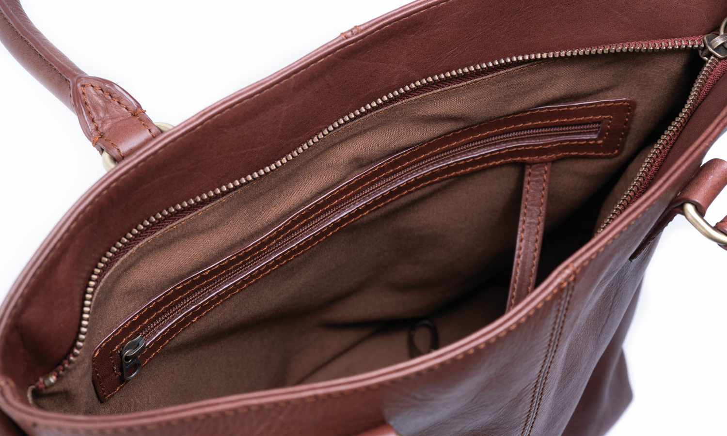 pflanzlich gegerbtes Rindsleder, braun, 26 x 28 x 8 cm