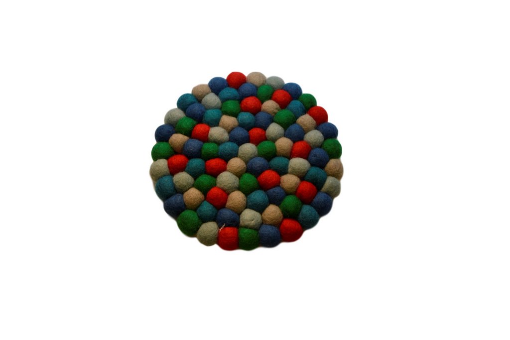Filz Untersetzer Rund dicke Kugeln, grün/bunt, Ø20