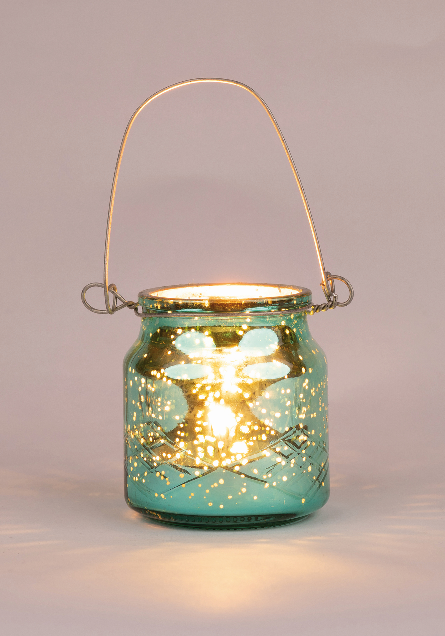 aus recyceltem Glas, türkis, glänzend,, H 7 cm, Ø 5,5 cm,