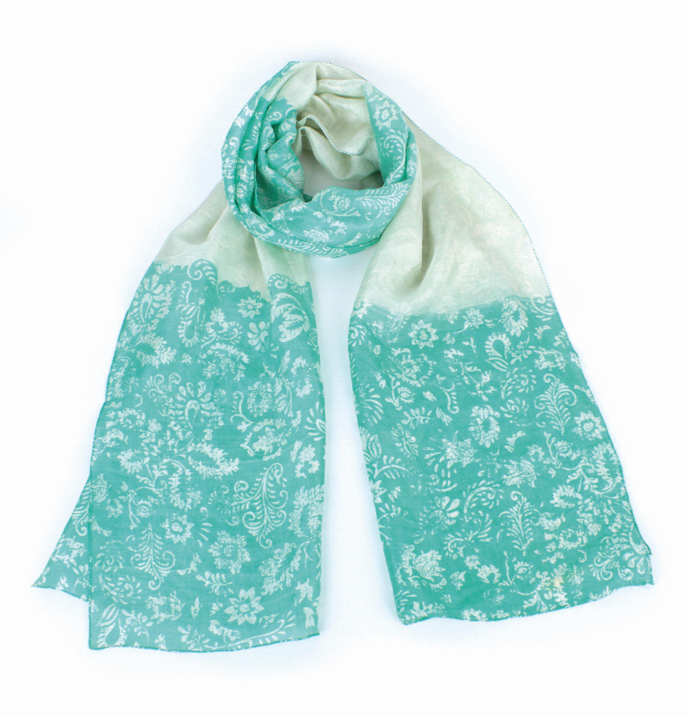 handgewebt und -bedruckt, 100% Seide,, türkis, 50 x 180 cm,