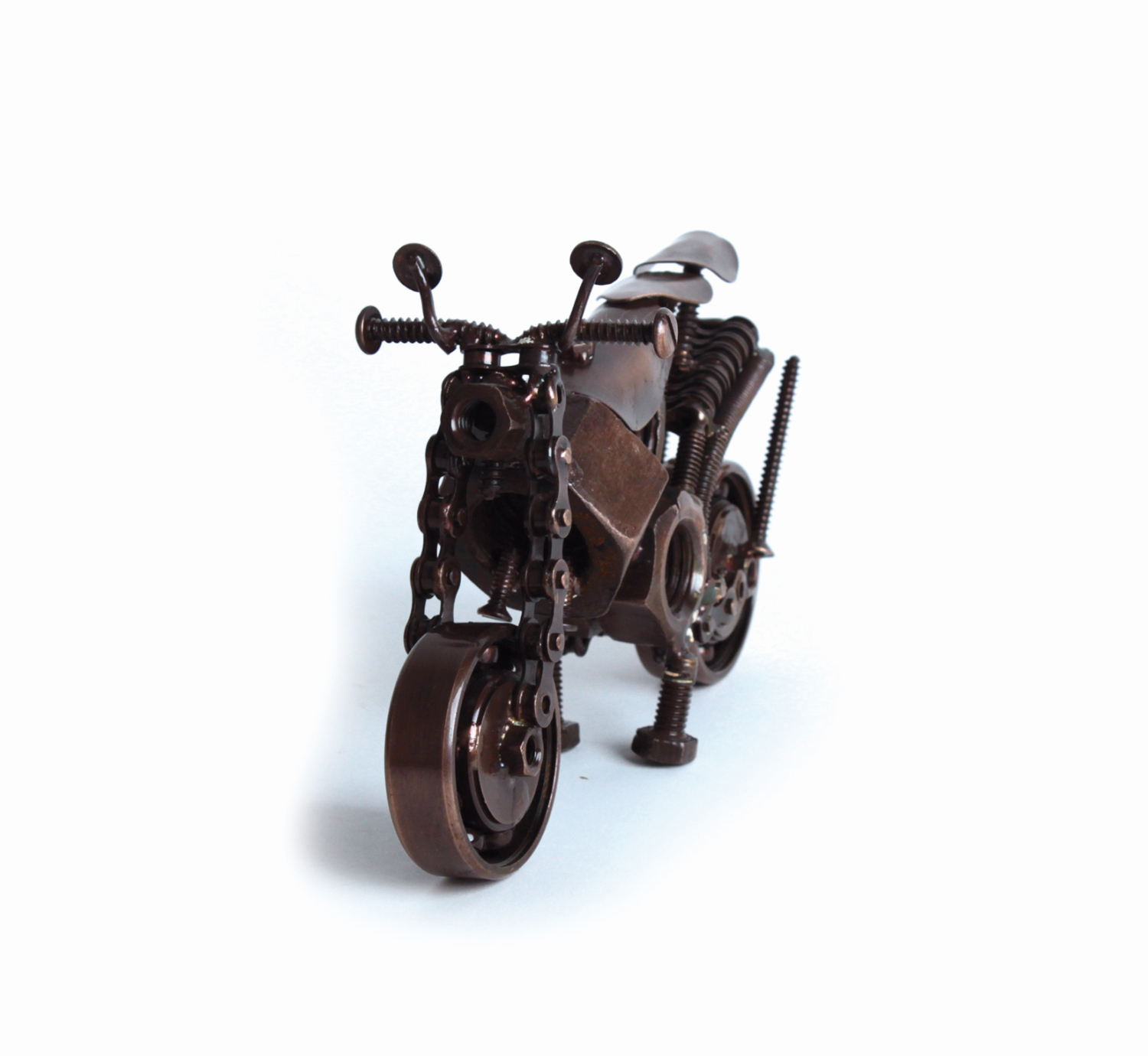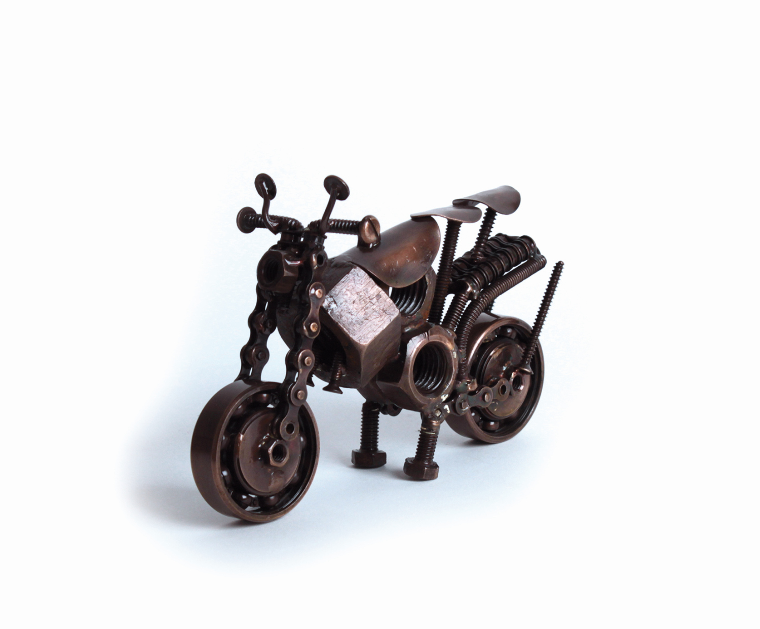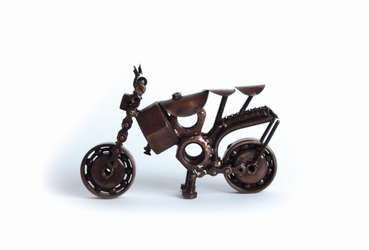 recycelte Fahrradkette und Schrauben,, kupferfarben,, 19 x 7 x 12 cm