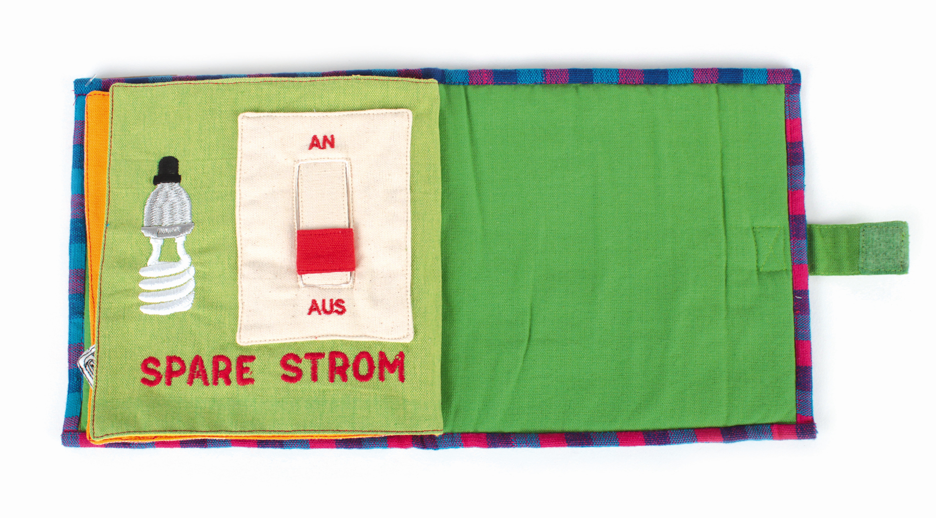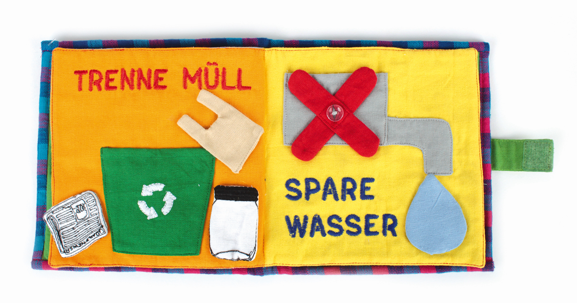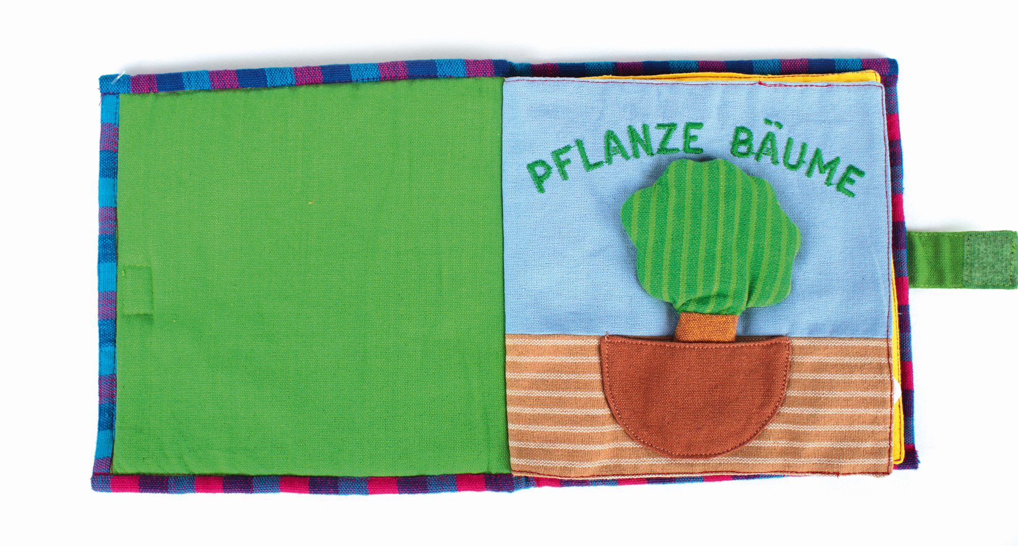 4-seitig, zum spielerischen Lernen und Entdecken,, 100% handgewebte Baumwolle,, Füllung: Polyester, grün/bunt, 18 x 18 cm