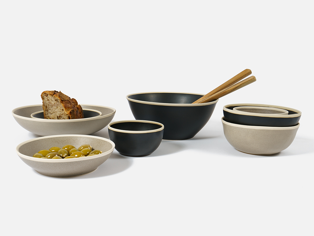 Keramik, off-white/schwarz, geeignet für Mikrowelle und Spülmaschine, H 7,5 cm, Ø 18 cm