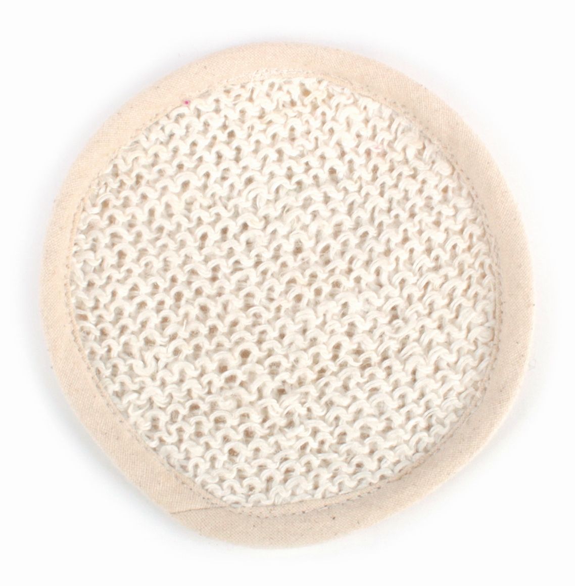 50% ungebleichte Allo-Faser (Brennnessel), 50% Baumwolle aus kbA, mittlerer Peeling-Effekt, Ø 12 cm