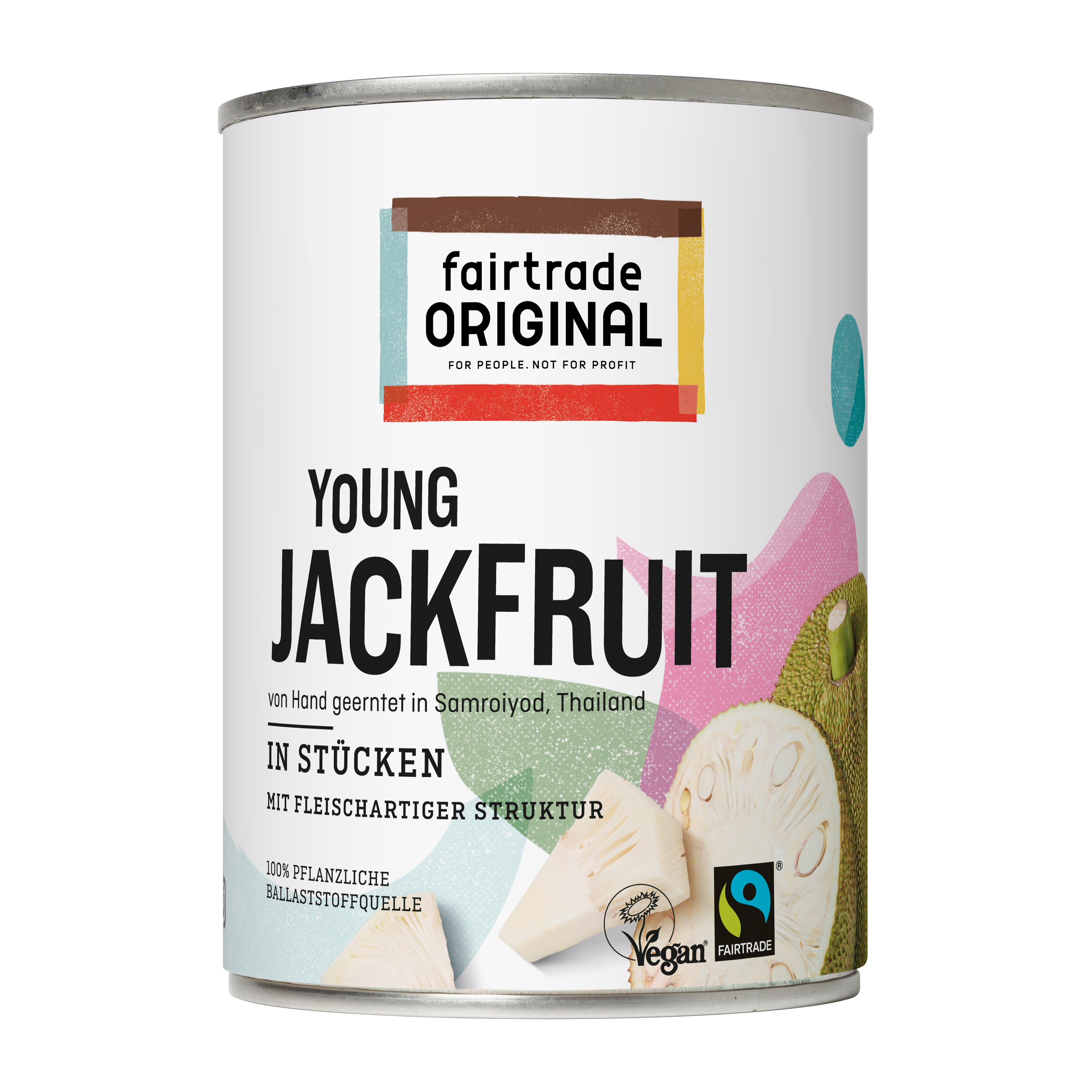 Von Hand geerntet in Samroiyod, Thailand. Die Fairtrade Young Jackfruit ist 100% pflanzlich und enthält eine faserige Struktur, die Fleisch ähnelt.