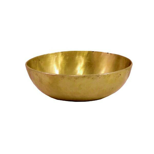 Handgetriebene Klangschale aus Bronze in flacher Form. Ein passender Klöppel wird mitgeliefert.