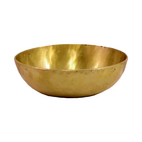 Handgetriebene Klangschale aus Bronze in flacher Form. Ein passender Klöppel wird mitgeliefert.