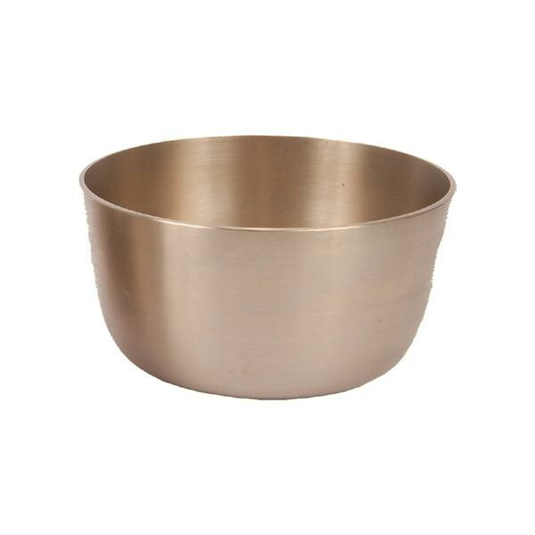 Gegossene Klangschale aus Bronze in hoher Form, mit matter Oberfläche. Ein passender Klöppel wird mitgeliefert.
