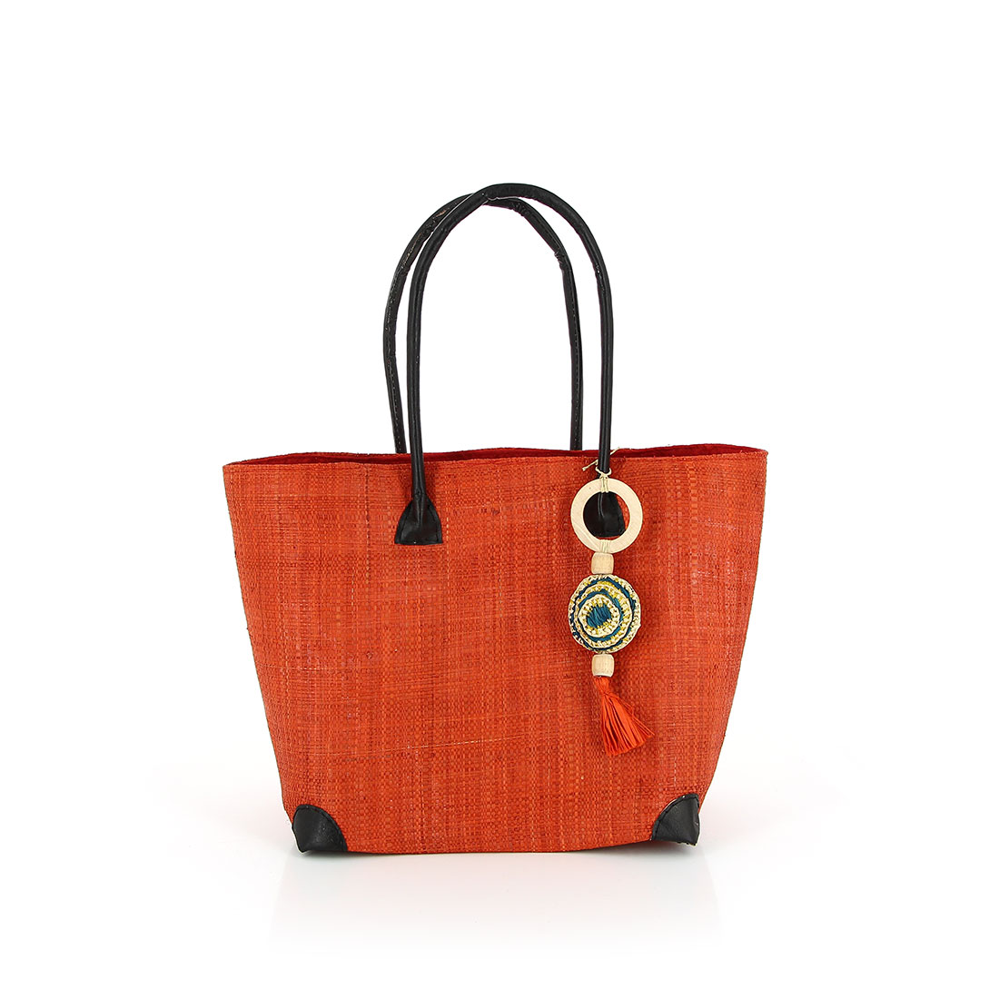 Die Handtaschen werden in unserer Partnerwerkstatt in Madagaskar aus den Blattfasern der Raphia-Palme gewebt. Die heimische Palme wird in der Umgebung angebaut. Nach der Ernte werden die Palmblätter im Fluss gewaschen, danach gefärbt und getrocknet. Auf manuellen Webstühlen entstehen große Matten, die zum Vernähen in die Stadt gebracht werden.