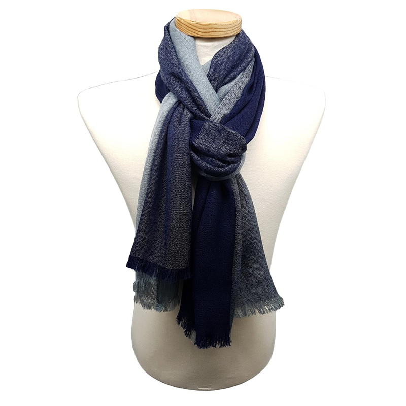 Wollschal mit Mini-Diamant Muster (65 * 200 cm) - Blau