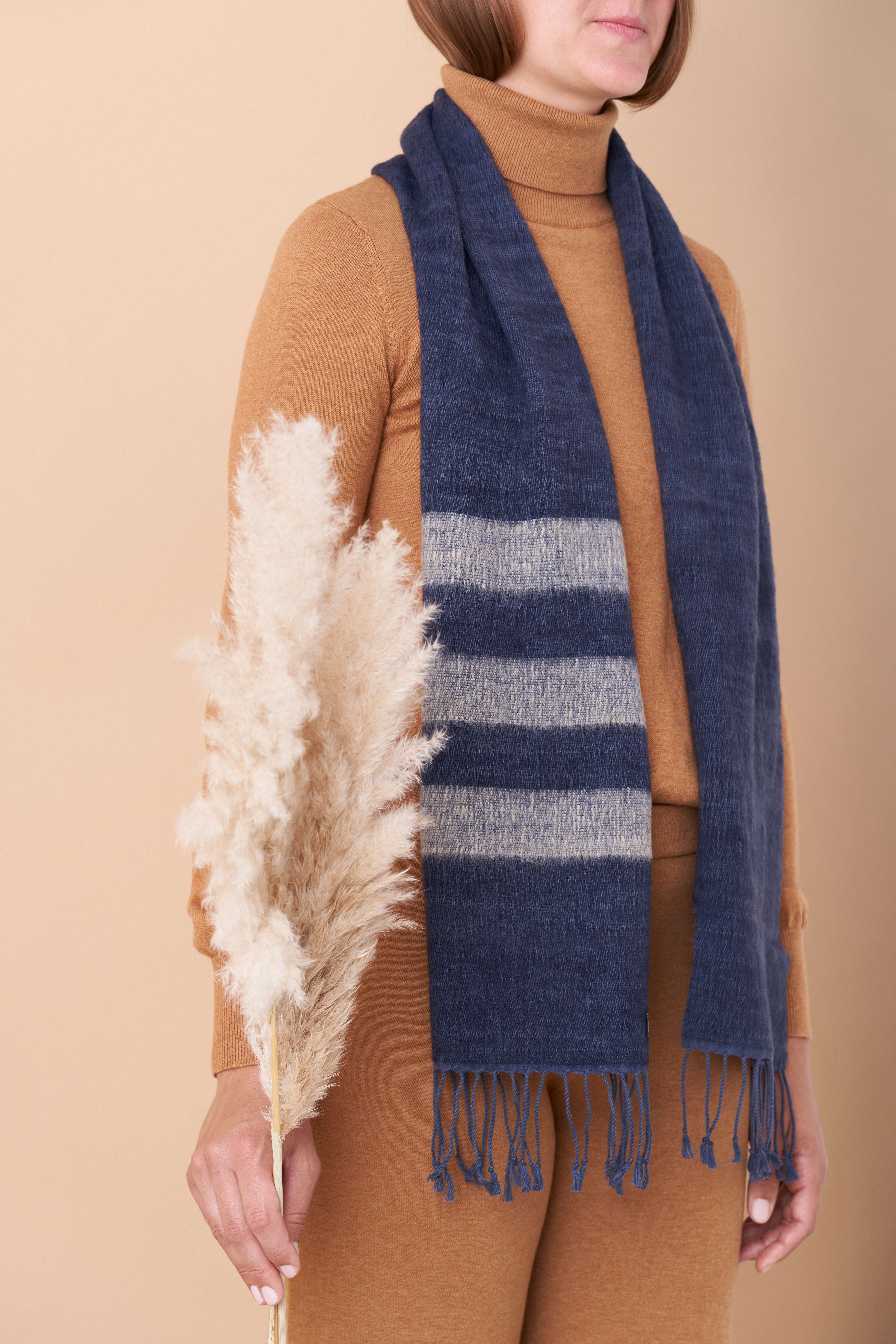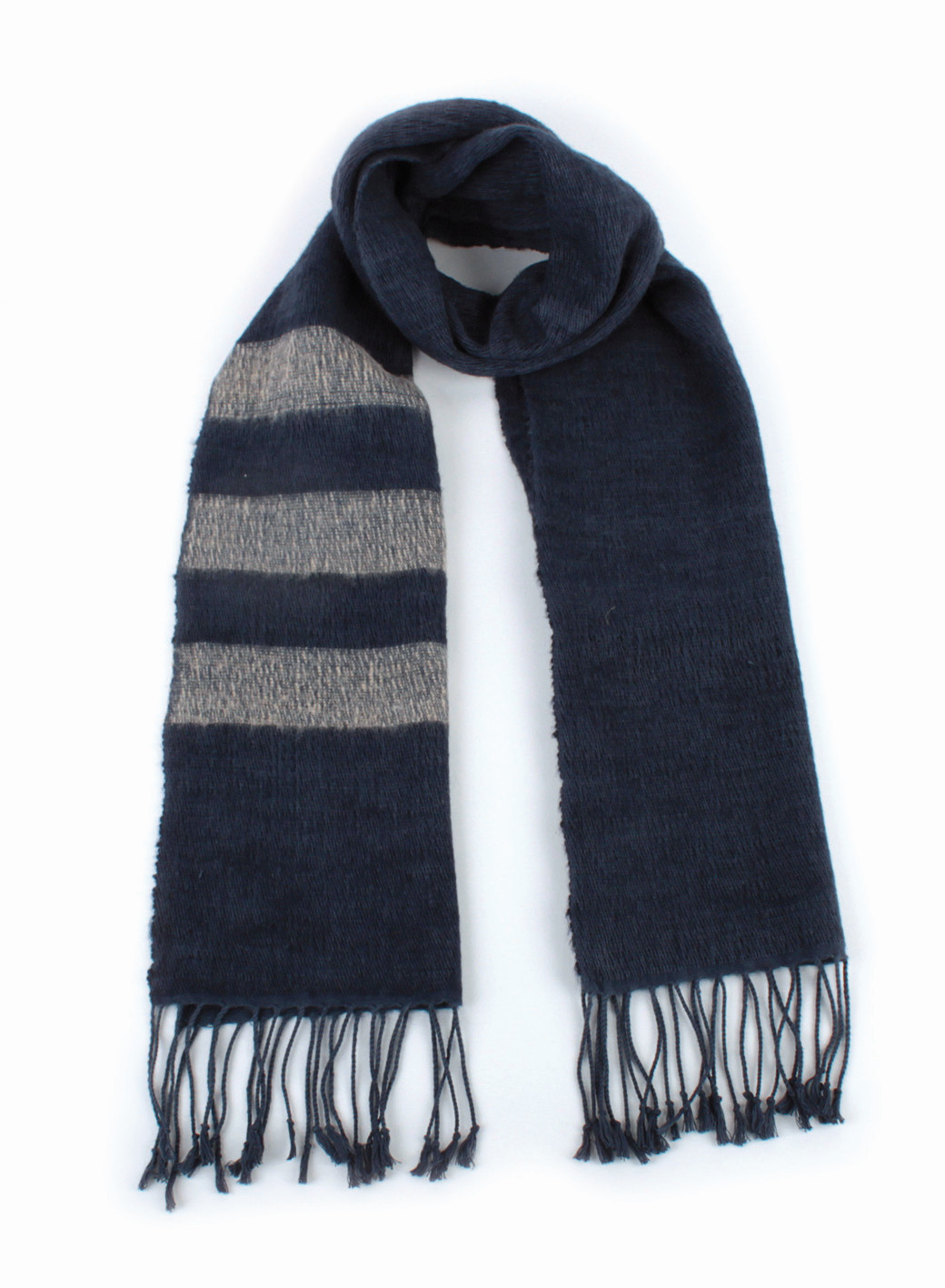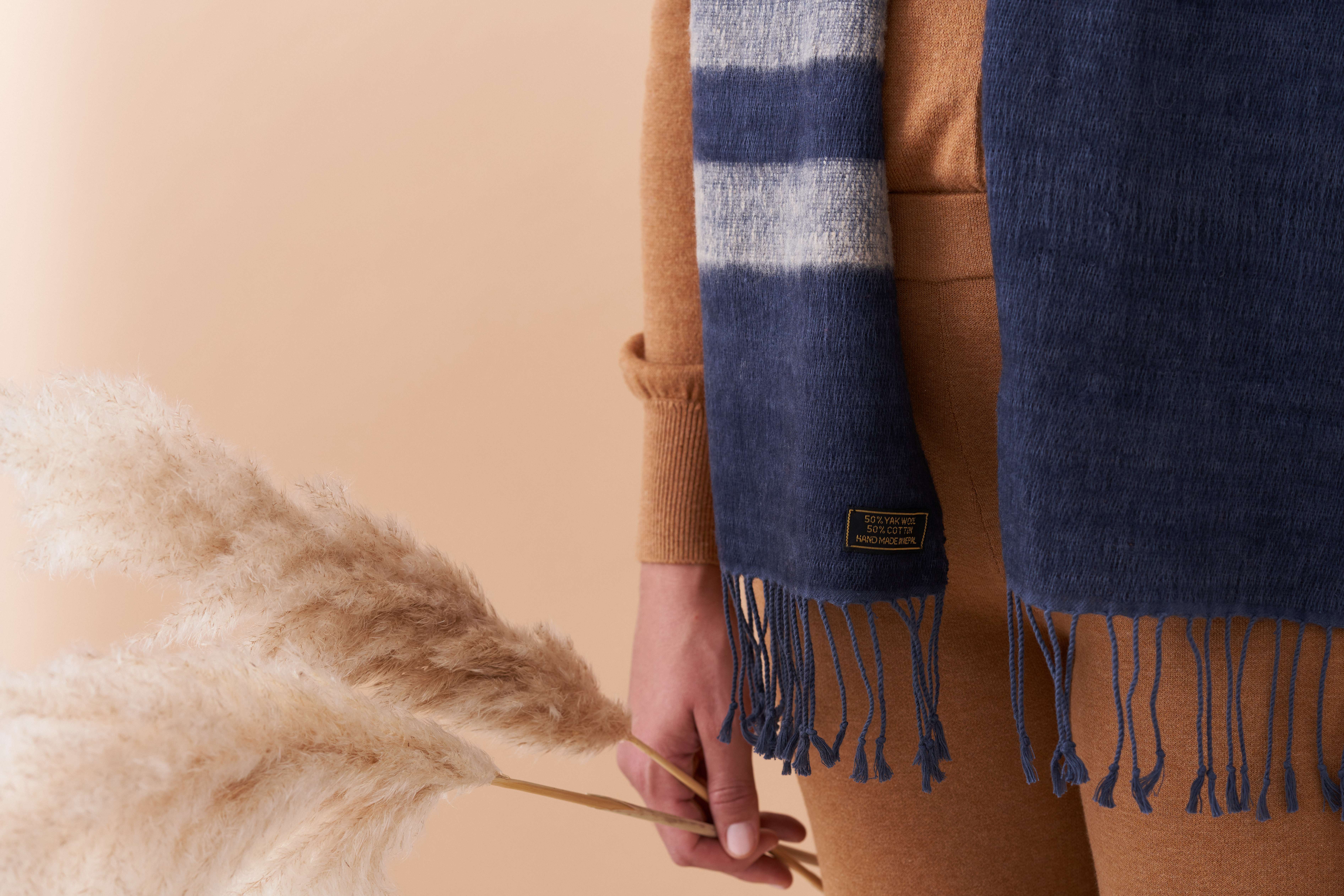 50% Yak-Wolle, 50% Baumwolle, handgewebt, blau/beige, 28 x 160 cm