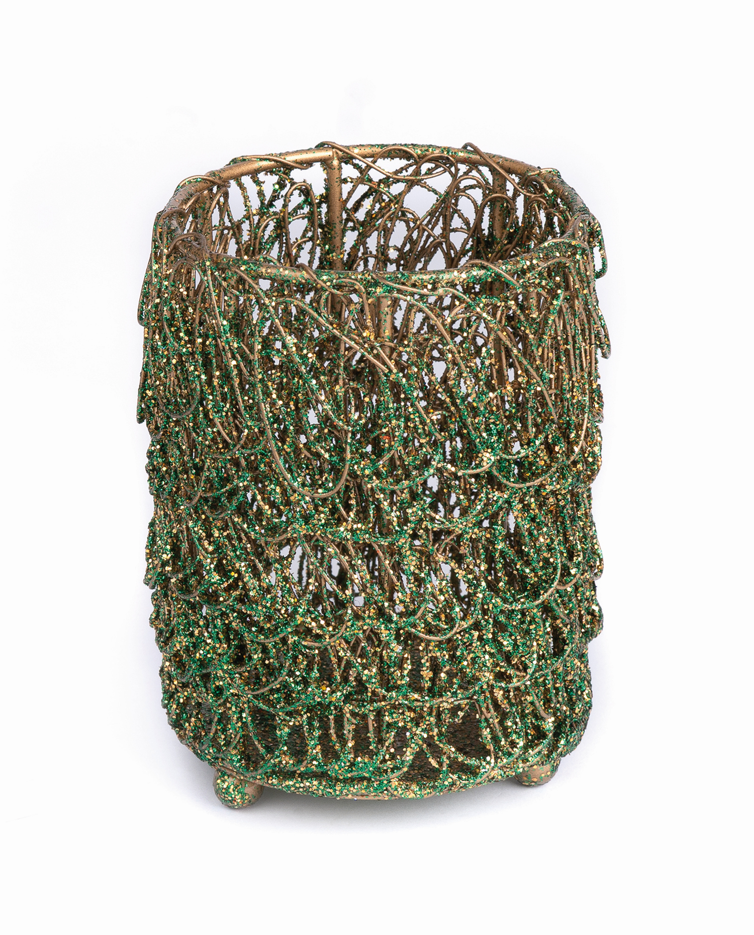 Eisen, mit zauberhaftem Glitzerfinish, grün, H 11,5 cm, Ø 8,5 cm