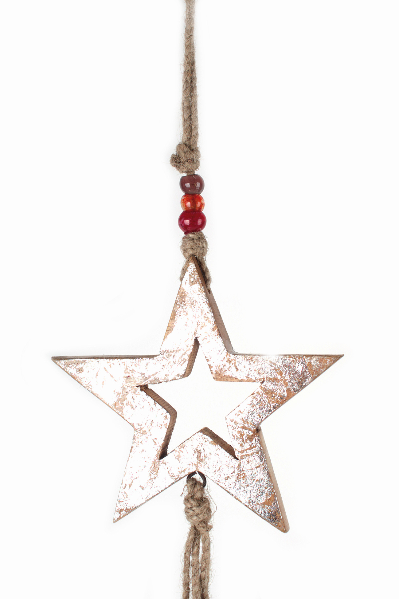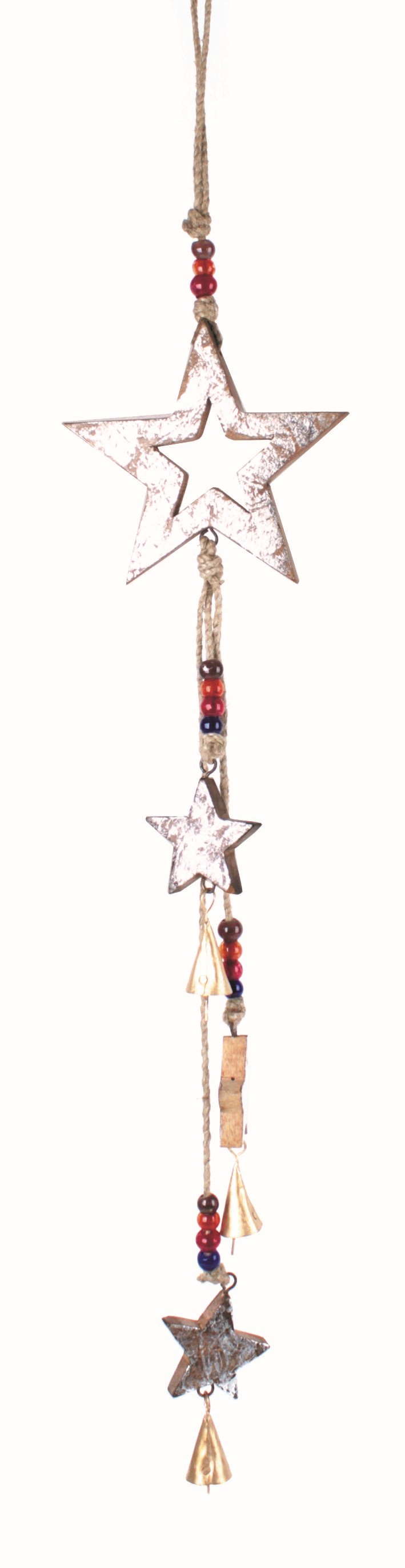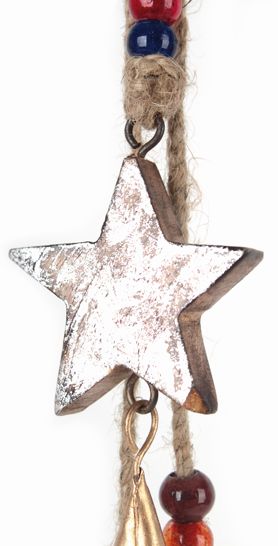 Mango-Holz, Glocke, Glasperlen, natur mit Silberglanz, 14,5 x 12,5 cm, L 74 cm