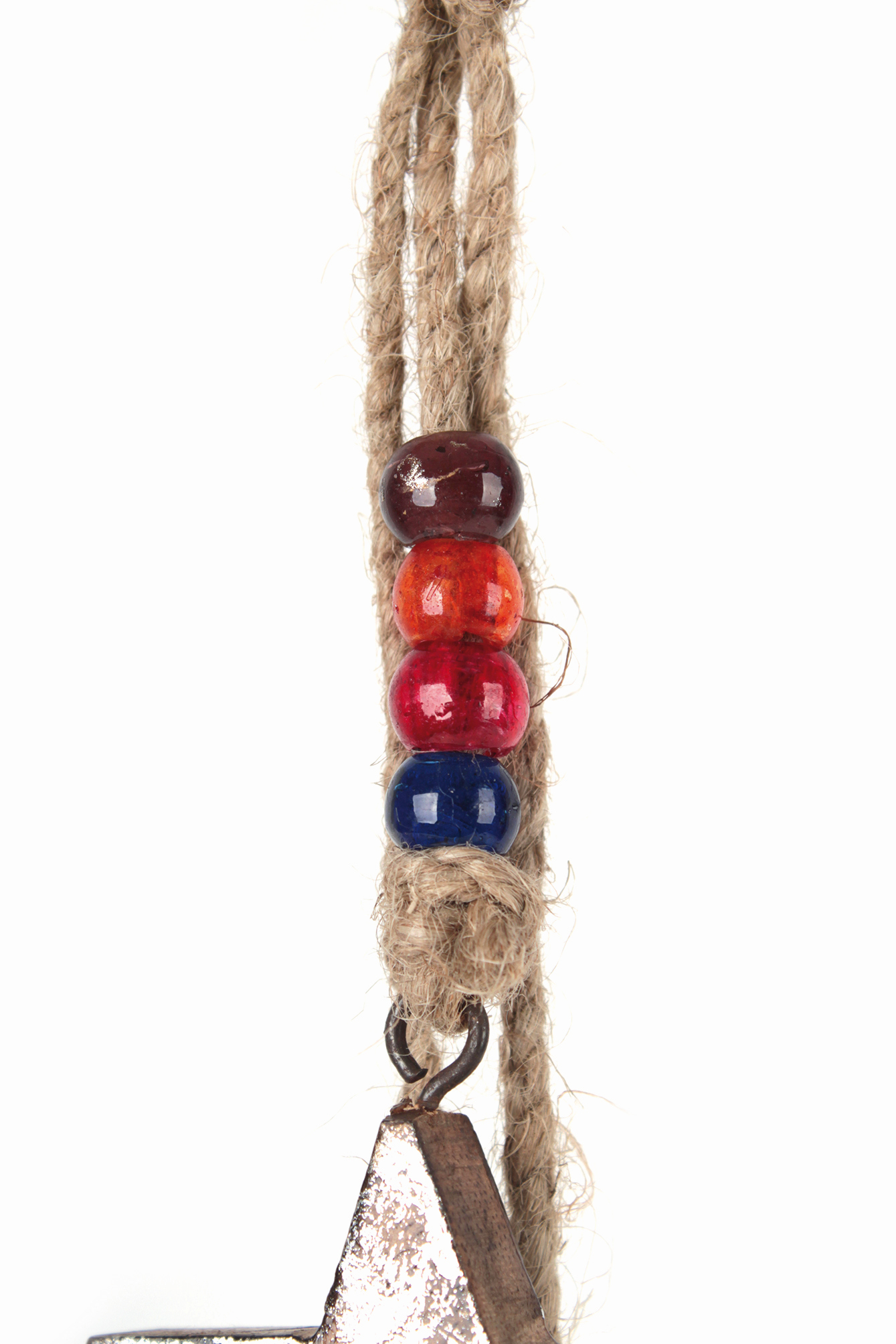 Mango-Holz mit Glocke und Glasperlen,, natur mit Silberglanz,, 14,5 x 12,5 cm,
