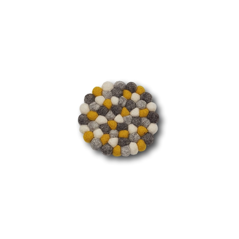 Filz Untersetzer Rund dünne Kugeln ca. 10 cm - Natur/Gelb