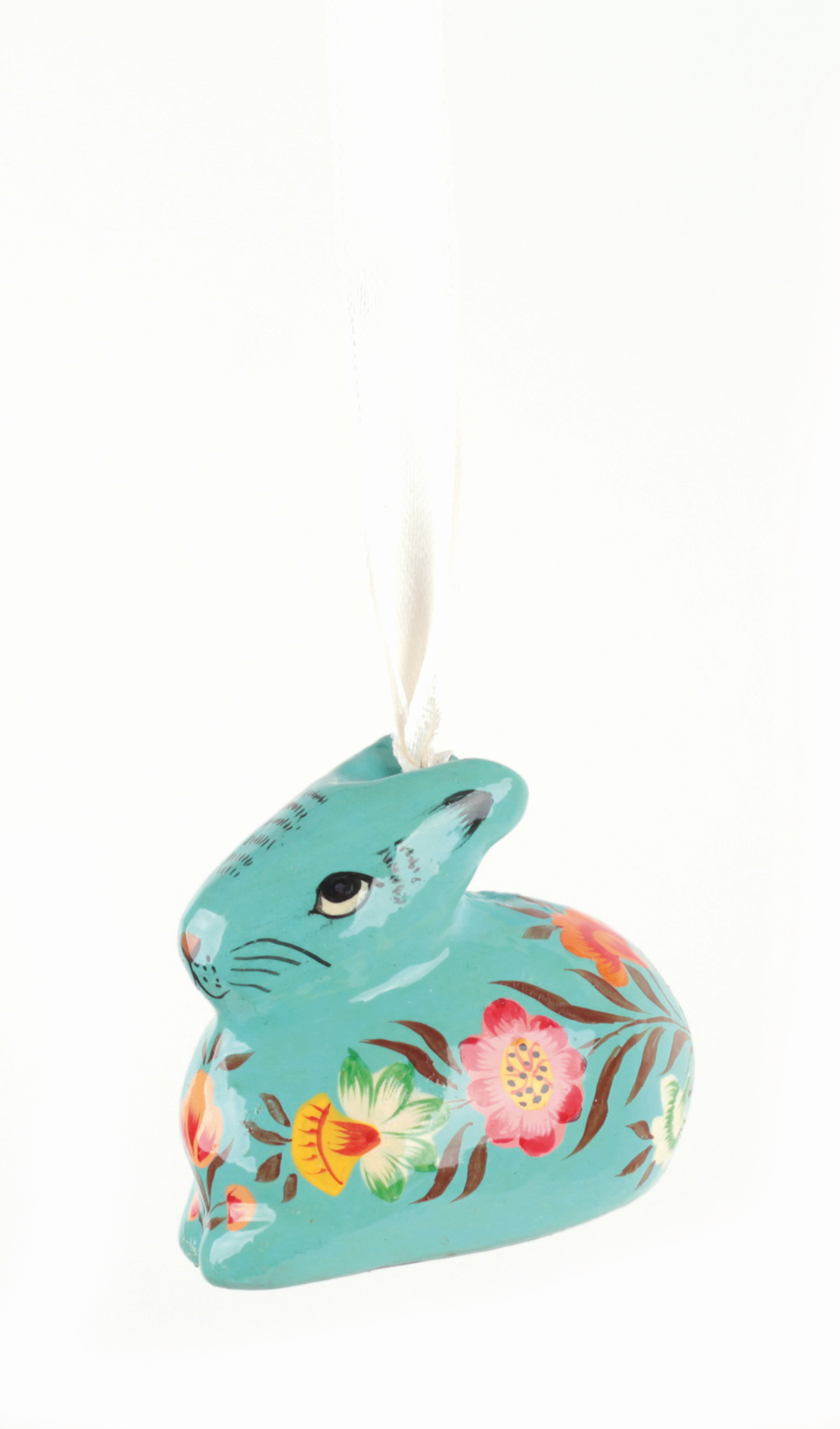 Pappmaschee, lackiert und handbemalt, hellblau mit floralem Muster, 6 x 5 cm