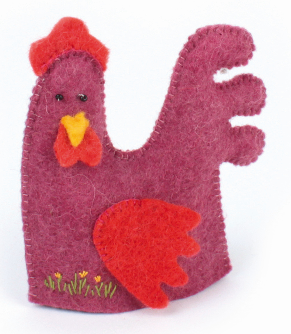 100% Wolle, weinrot/rot mit Stickerei, 9,5 x 10 cm