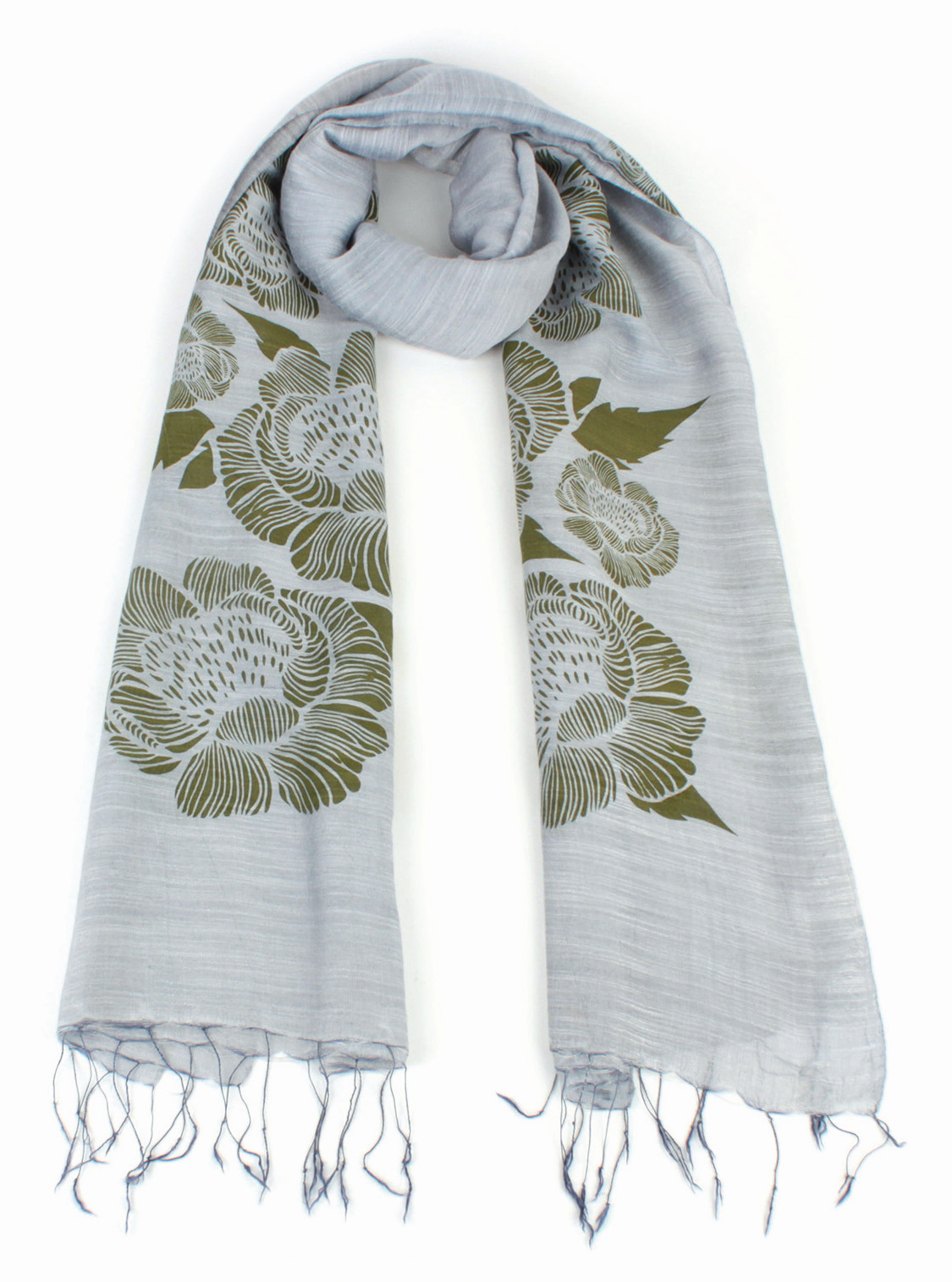 88% Viskose, 12% Seide,, grau/olivgrün, 60 x 180 cm, 0,