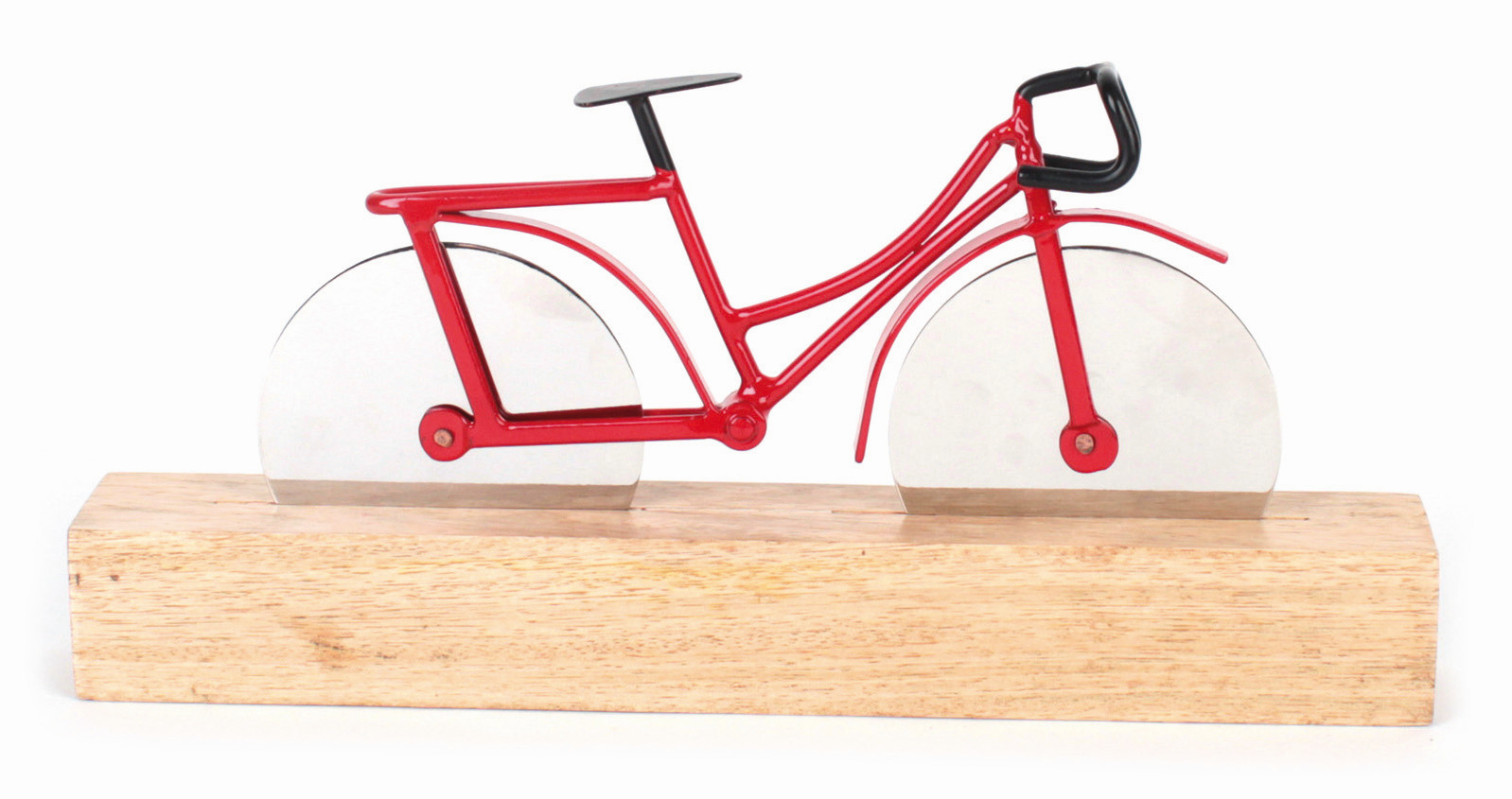 Edelstahl, Mango-Holz, nicht für die Spülmaschine geeignet, rot/schwarz, Fahrrad: 20 x 11 cm, Holzblock: 26 x 3,5 x 3,5 cm