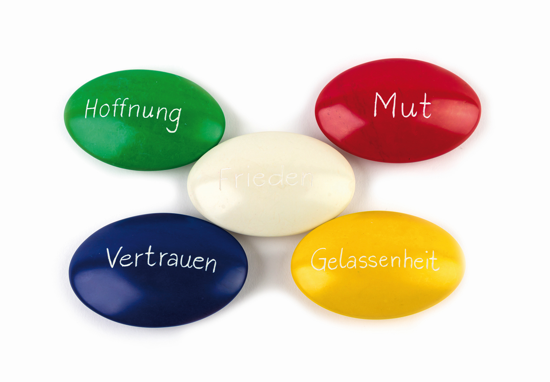 Kisii-Speckstein, verschiedene Farben und Worte, 7,5 x 5 cm