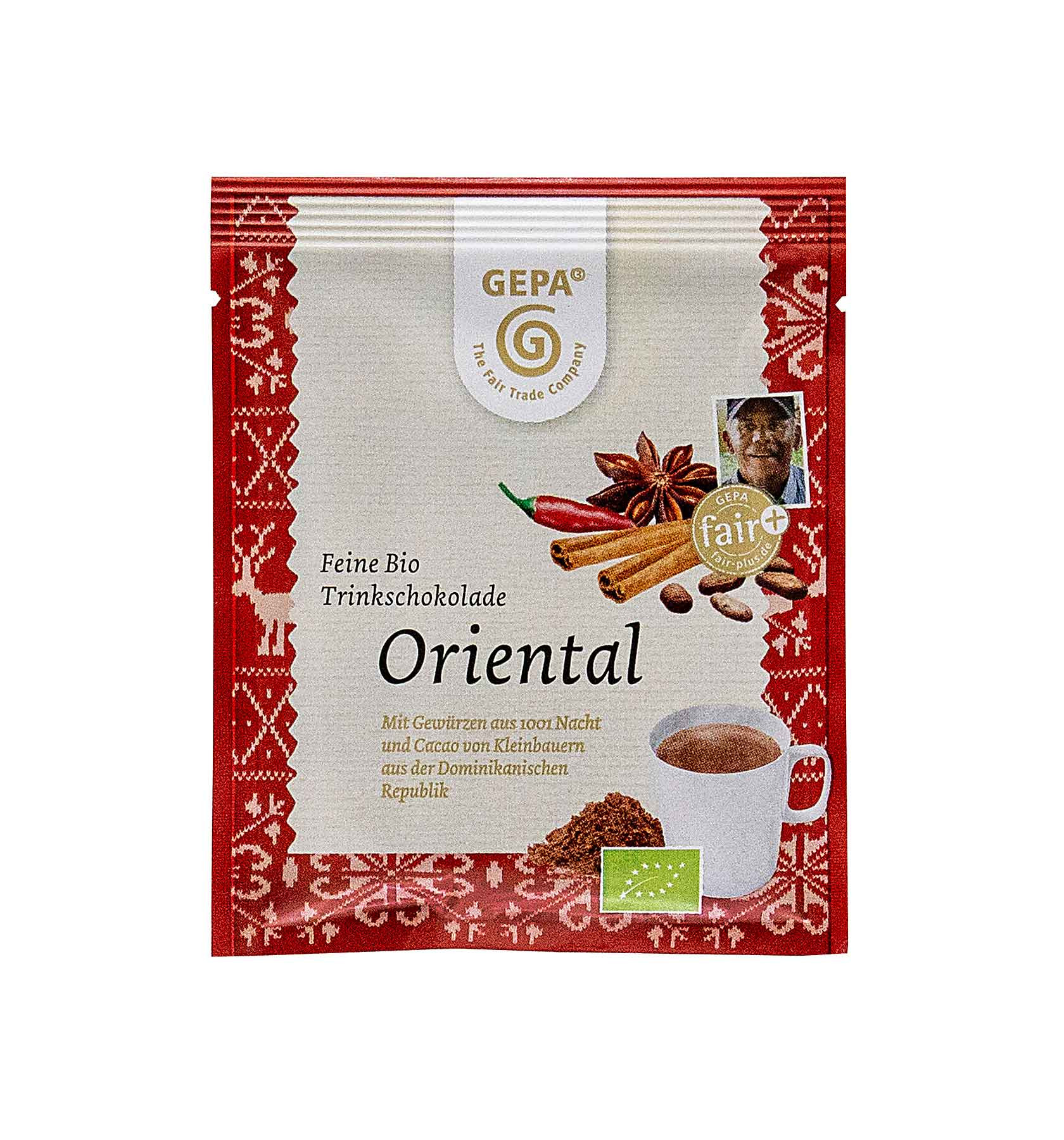 Der Ursprung des Kakaos für unsere Bio Trinkschokolade Oriental liegt bei Kleinbauern aus der Dominikanischen Republik, und alle Zutaten stammen aus kontrolliert biologischem Anbau. Auch praktisch: Die Tassen-Portionsbeutel halten die Trinkschokolade frisch und aromatisch.