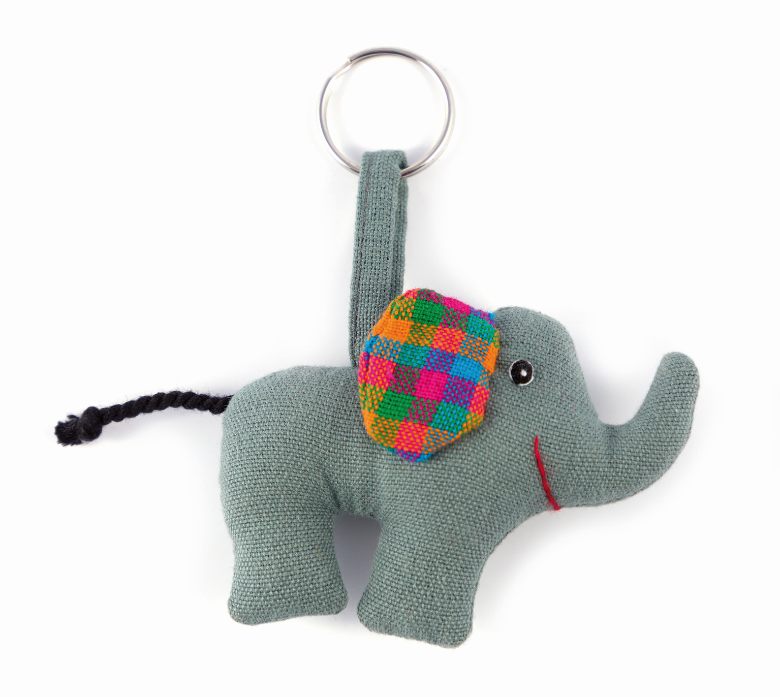 Obermaterial: 100% handgewebte Baumwolle, Füllung: Polyester, grau/bunte Ohren, L ca. 10 cm