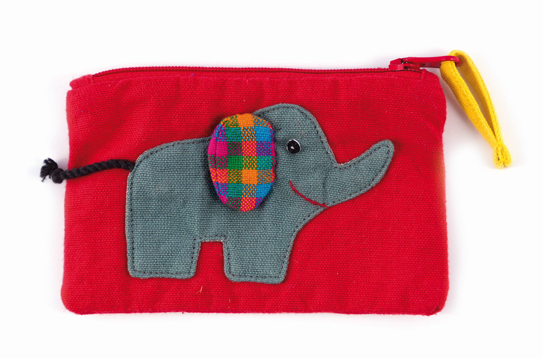 100% handgewebte Baumwolle, mit Reißverschluss, rot/grau, 13 x 8 cm