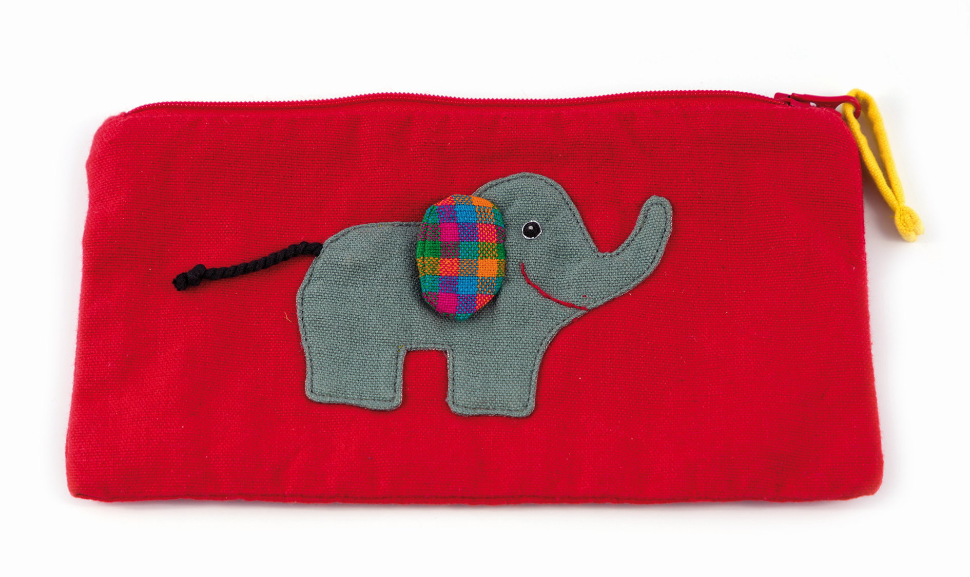 100% handgewebte Baumwolle, mit Reißverschluss, rot/grau, 20 x 11 cm