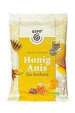 GEPA Honig Anis Bonbons schmeicheln dem Gaumen mit einer angenehm würzigen Mischung aus mildem Bienenhonig und einer herbsüßen Anisnote. Die leckeren Bio Bonbons sind immer und überall zur Hand, wenn es zwischendurch Zeit ist für ein Stück süßen Genuss aus Fairem Handel.