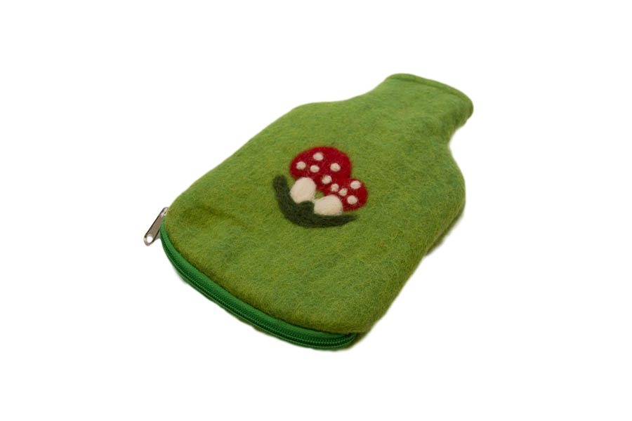 Wärmflaschenüberzug aus Filz - klein für 0,8l Flasche Roter Pilzkopf / Grün
