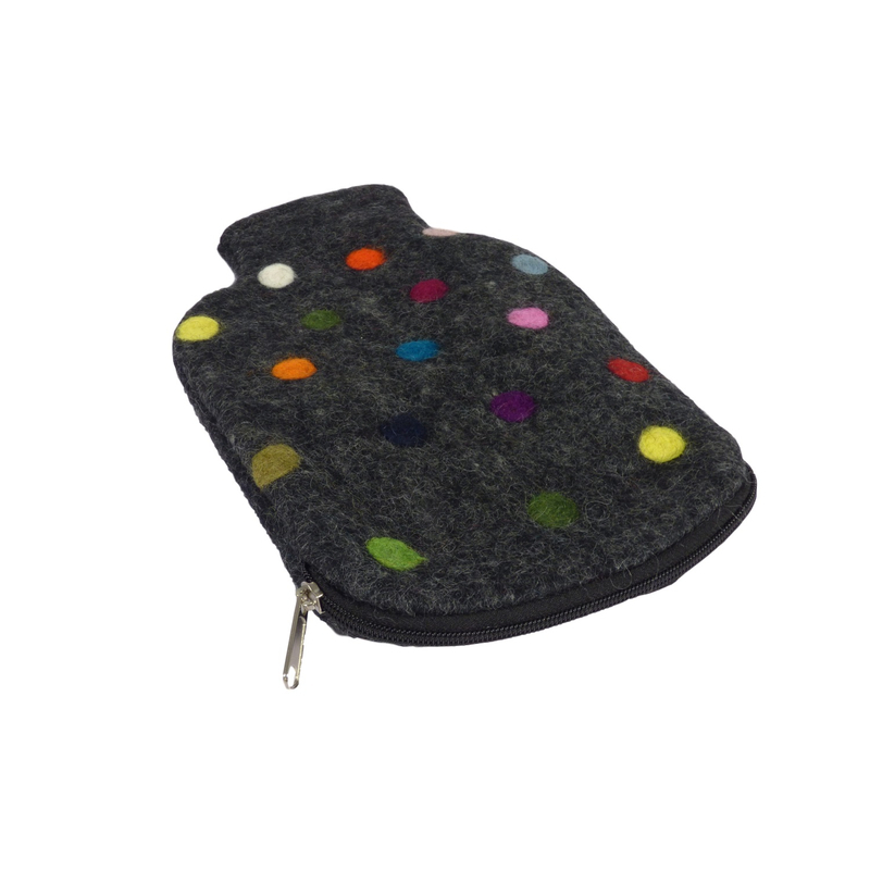 Wärmflaschenüberzug aus Filz - klein für 0,8l Flasche "Spotty" / Anthrazit