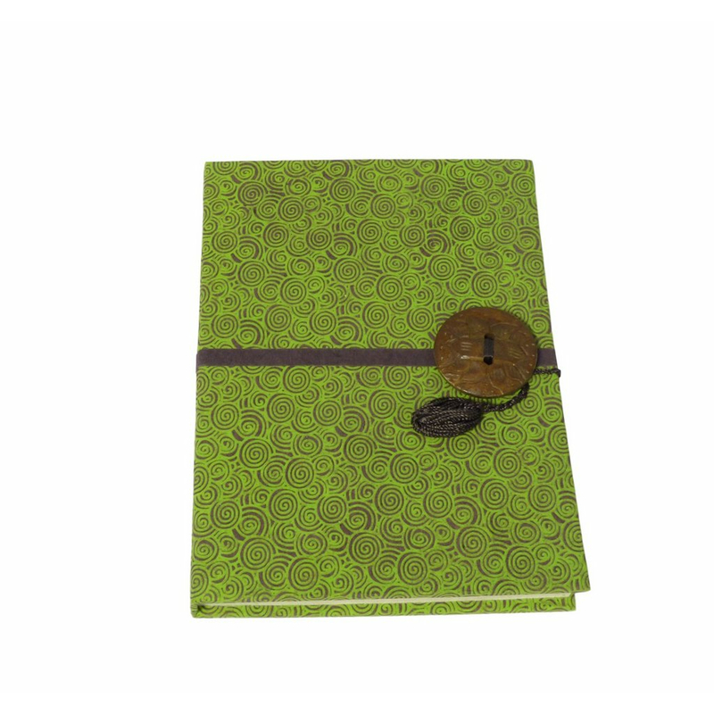 Notizbuch DIN A6 Gruen mit Kreisen und Knopf