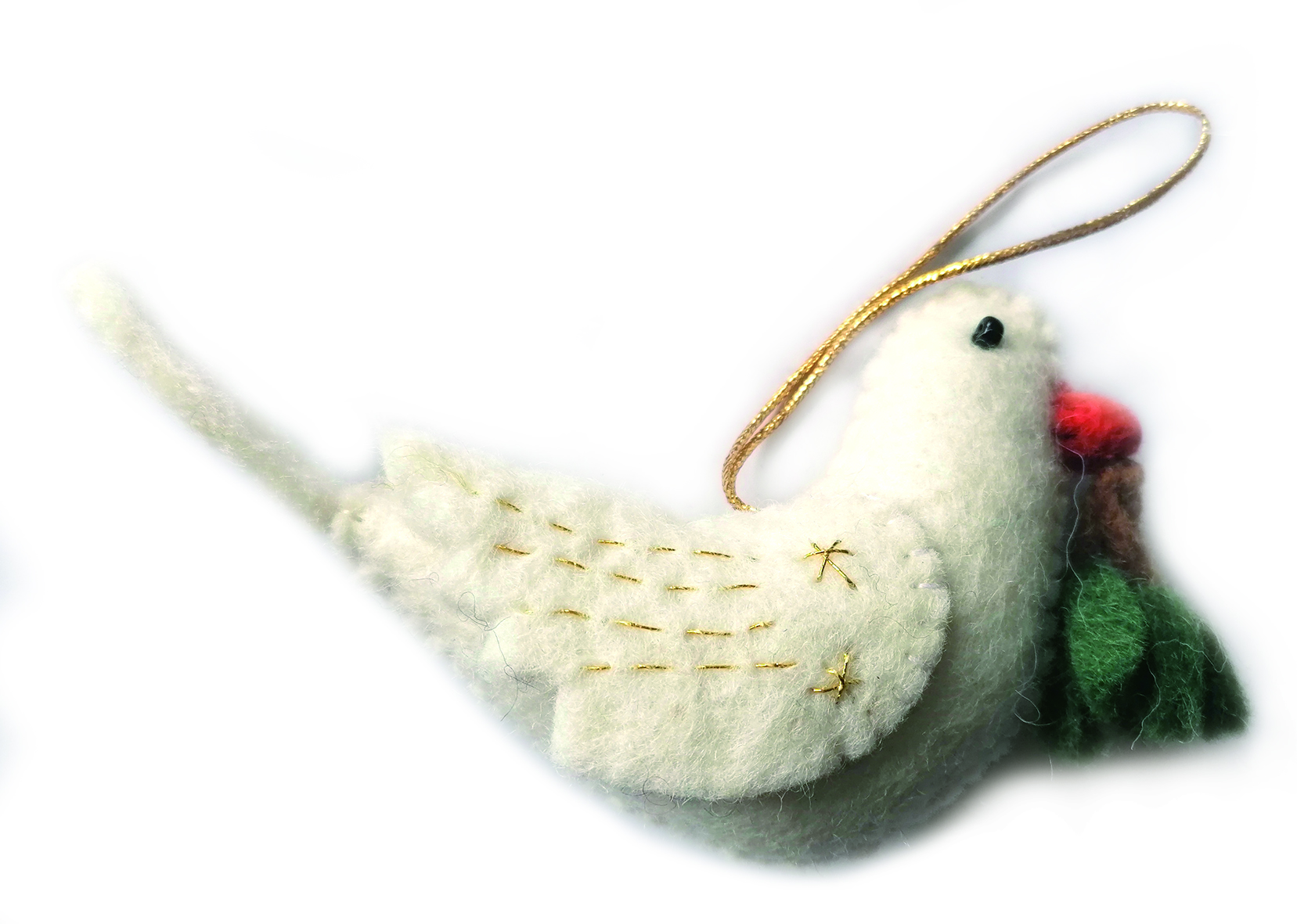 Filz, mit Stickerei, cremeweiß/grün/gold, 14 x 3,5 x 8 cm