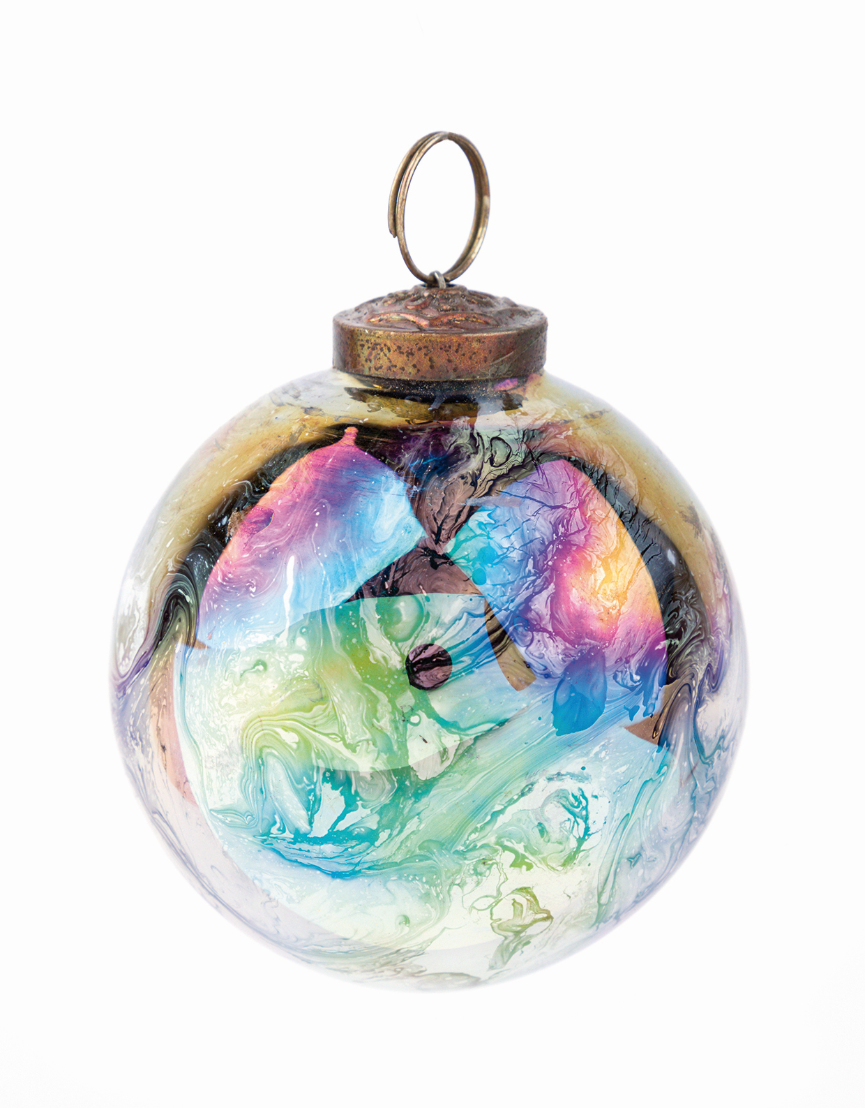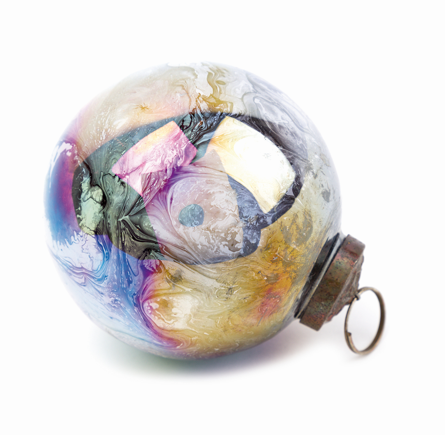 recyceltes Glas, blau/grau/bunt, mit Regenbogenglanz, Ø 7 cm