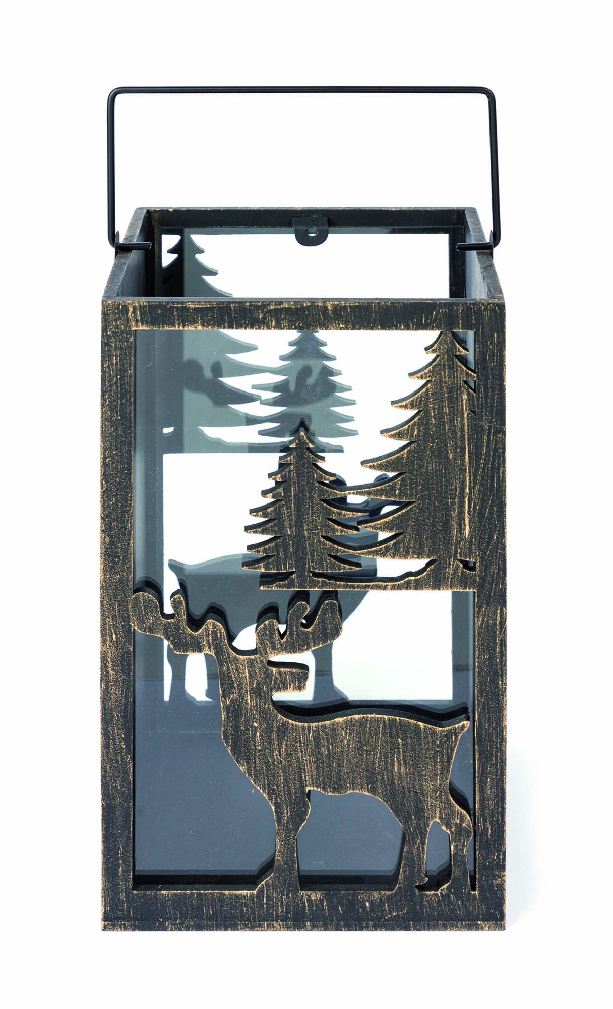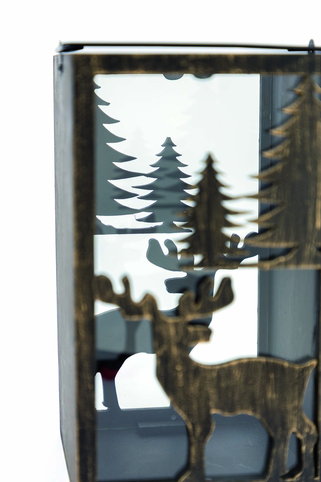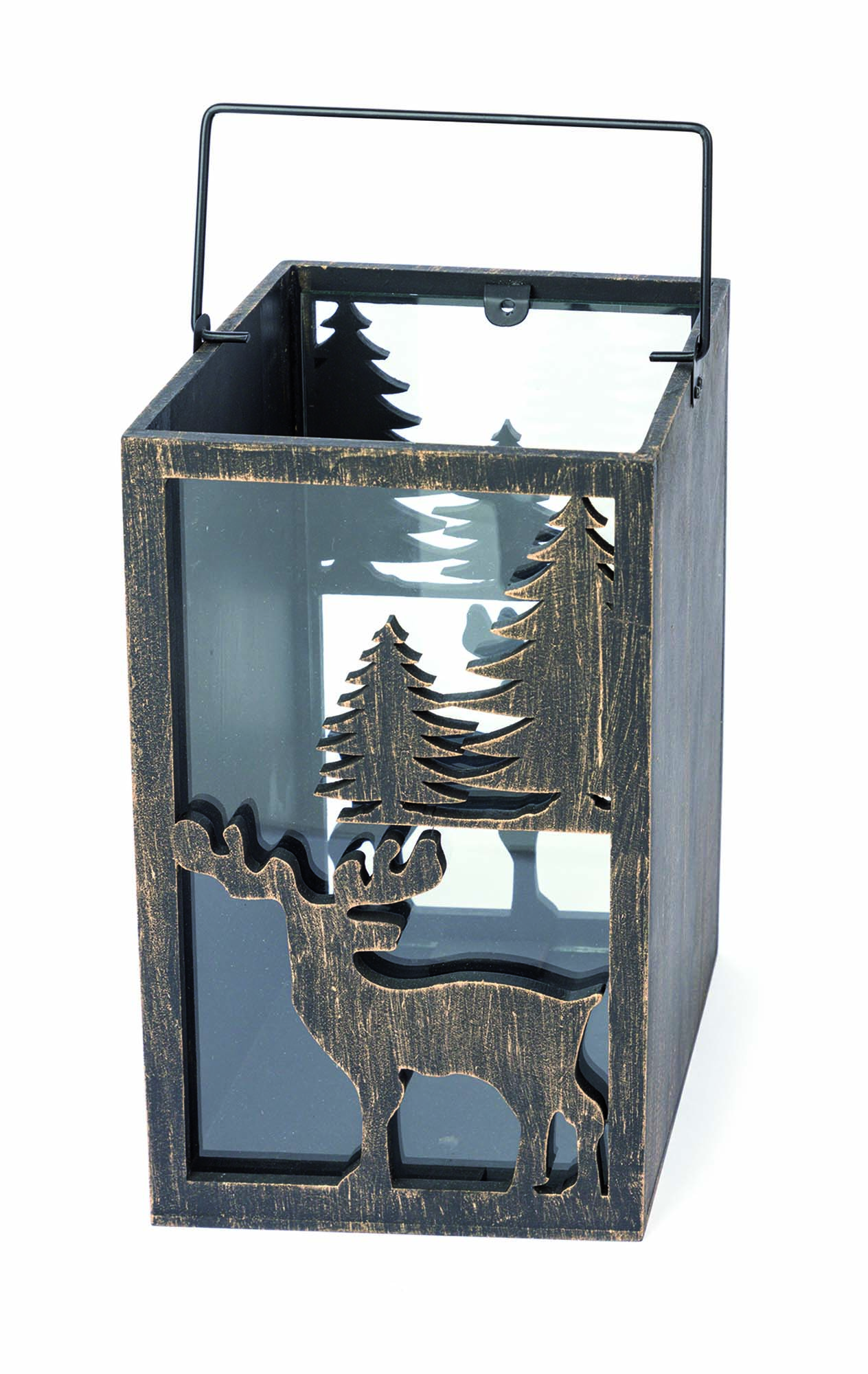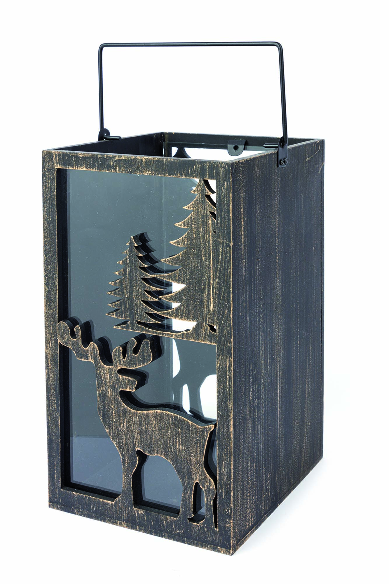 Mango-Holz und Glas, Henkel aus Metall, natur/schwarz mit Gold-Finish, 15 x 15 x 25,5 cm