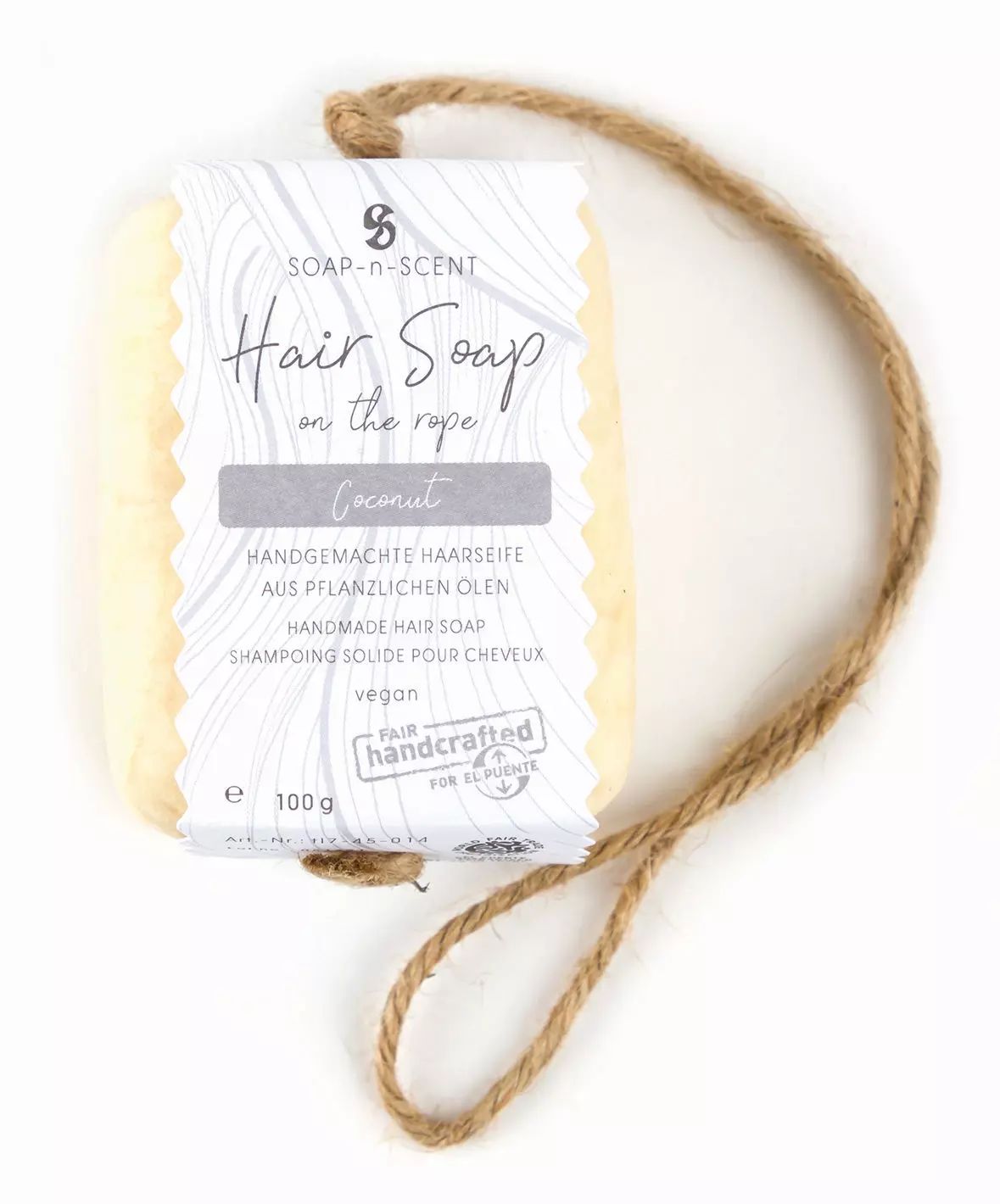 handgemachte Haarseife, pflanzliche Öle, mit Juteaufhängung, Sorte: Coconut, für anspruchsvolles/lockiges Haar, 100 g