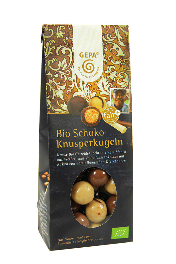 Der Kakao für unsere Fair Trade Schokokugeln stammt von Kleinbauern aus Peru, die Milch ist faire Bio Milch aus dem Berchtesgadener Land. Gefüllt sind die Schoko-Knusperkugeln mit einer Mischung aus Bio Amaranth sowie fairem Reis und Quinoa.