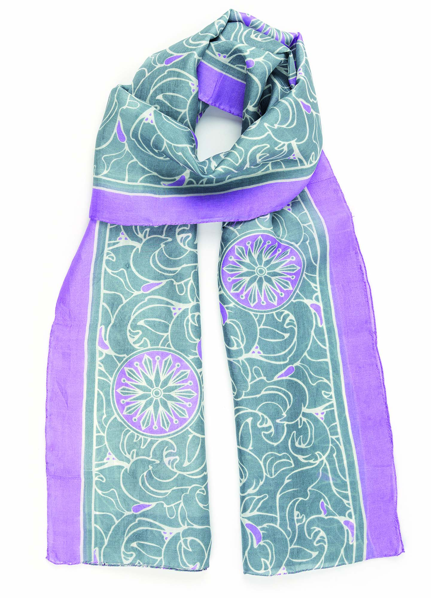 100% Seide, handgewebt und -bedruckt, grau/weiß/lavendel, 45 x 180 cm