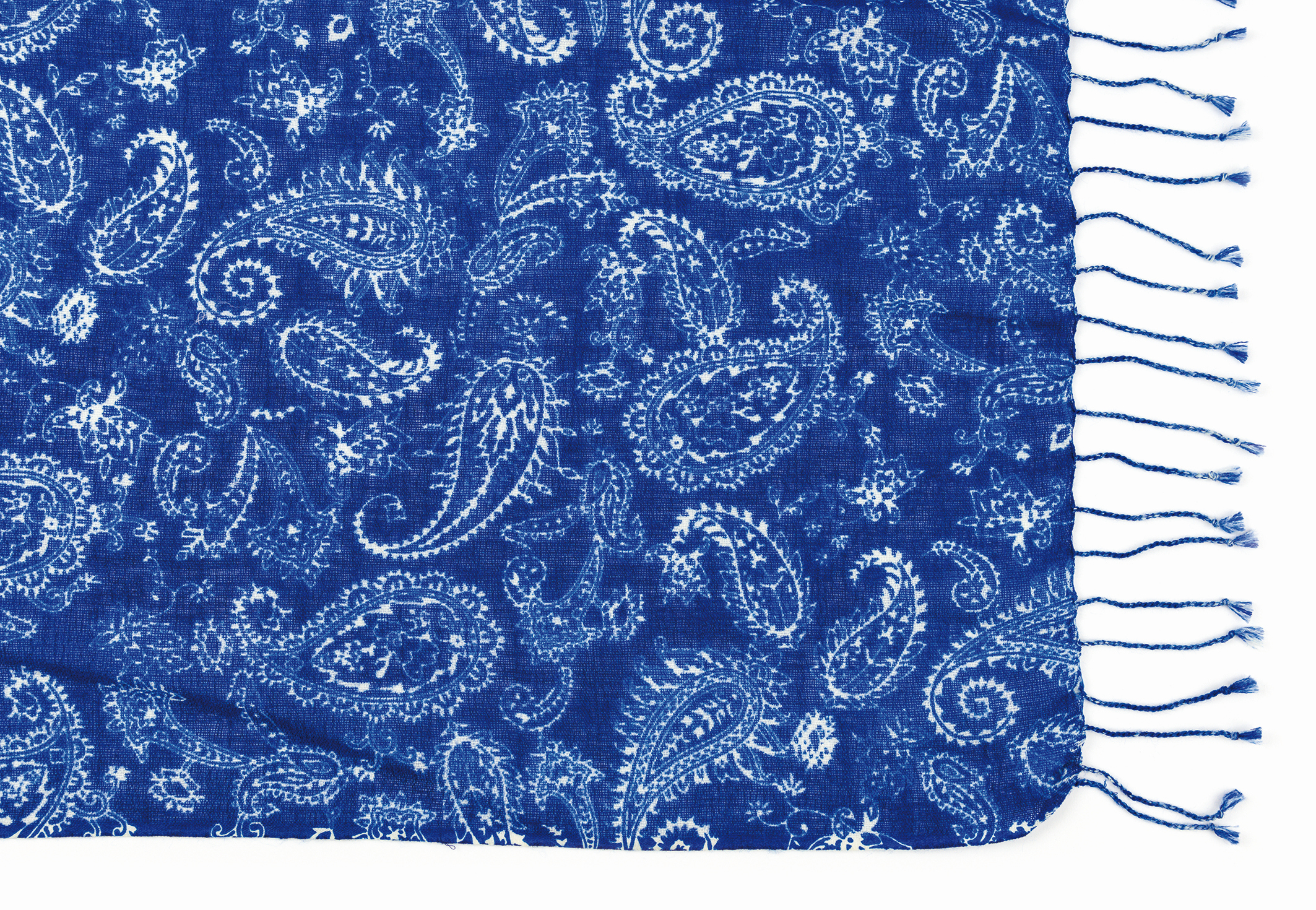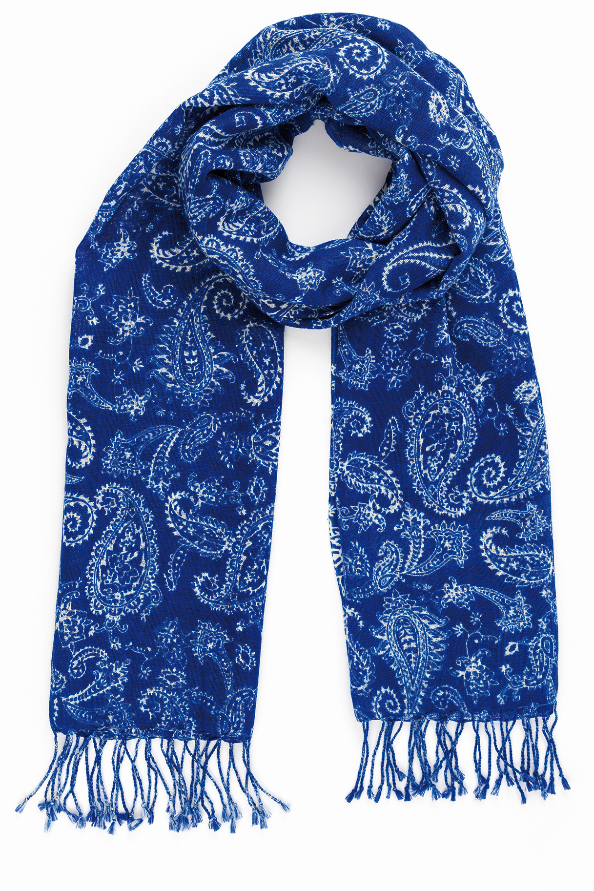 100% Wolle, handgewebt und -bedruckt, blau/weiß, 70 x 180 cm