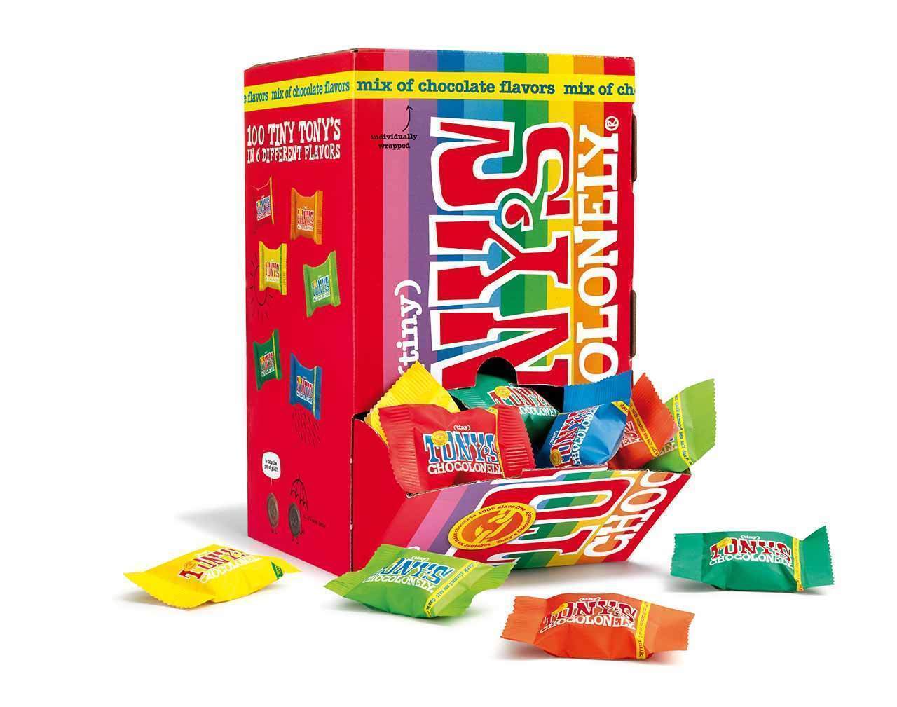 Jede Schokoladenbox enthält 100 kleine Tony's à 9g.