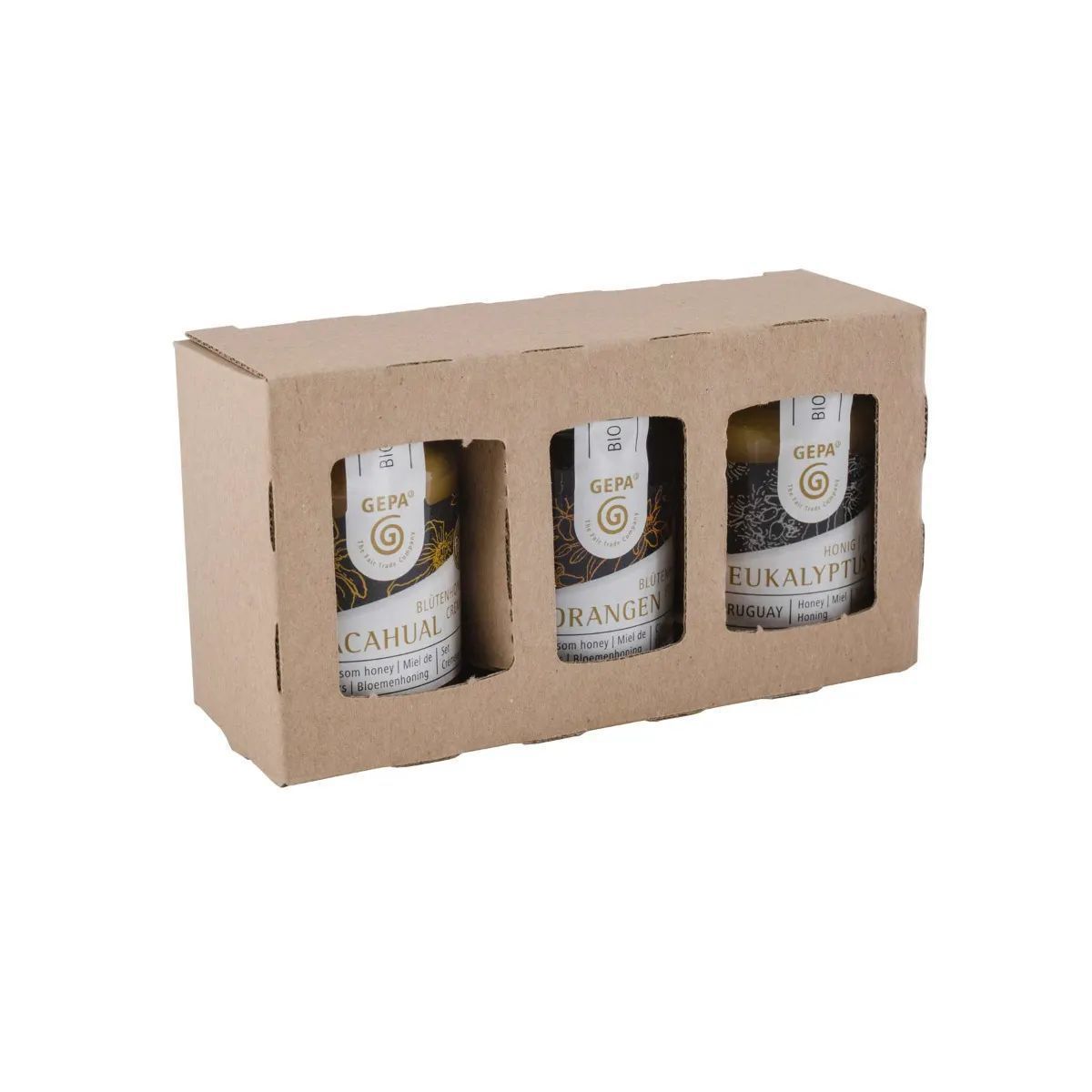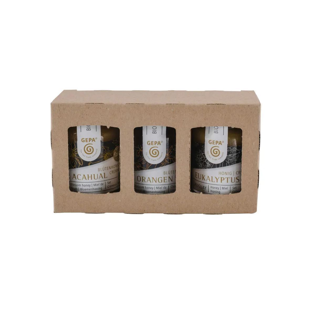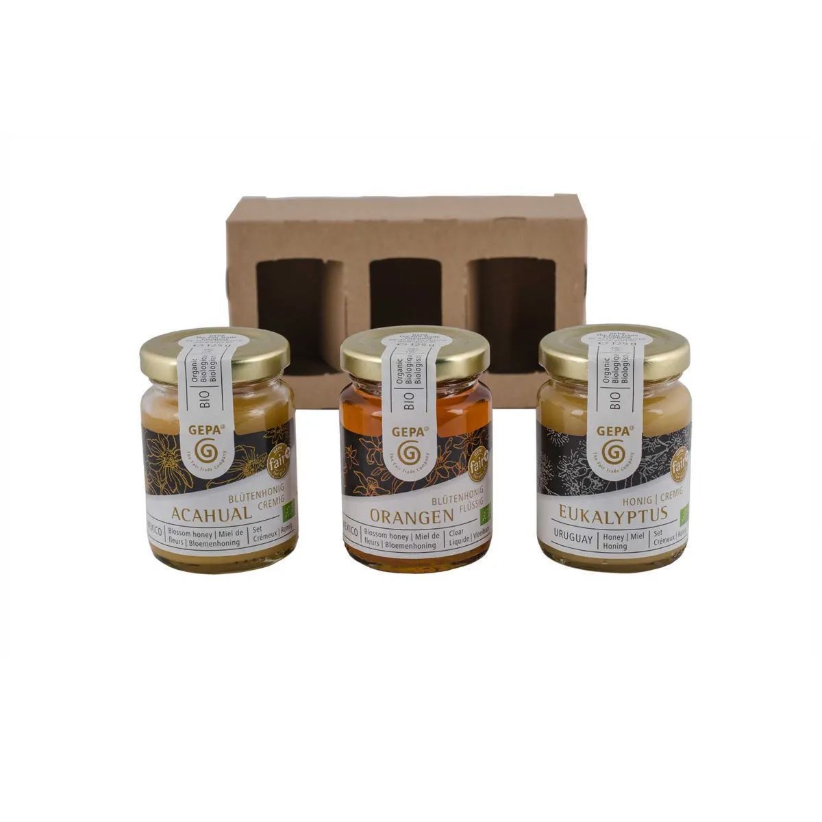 Ein schönes kleines Mitbringsel oder zum Probieren von verschiedenen Bio Honigen - das Set aus Acahual Blütenhonig, Florecita Blütenhonig und Eukalyptus-Honig in Bio-Qualität. Alle drei Sorten haben aufgrund der jeweiligen Pflanzen, von denen die Bienen den Nektar sammeln, einen vielfältigen Geschmack: herb-würzig, blumig-würzig oder intensiv-würzig. Lassen Sie sich überraschen!