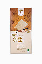 Mit fein gemahlenen Mandeln und echter Bourbon-Vanille betört diese vegane weiße Schokolade alle Sinne. Ihren besonderen Schmelz verdankt diese weiße Bio Schokolade der reinen Kakaobutter, die aus Kakaobohnen, unter anderem von CECAQ-11 aus São Tomé, gewonnen wird.