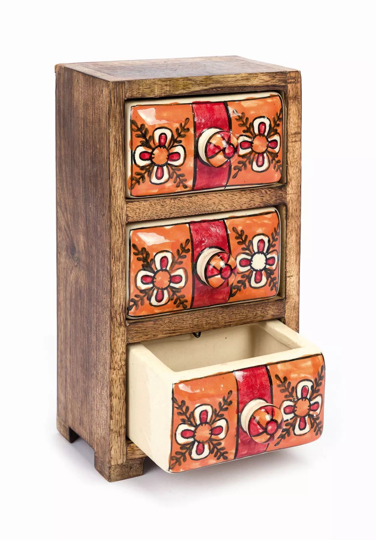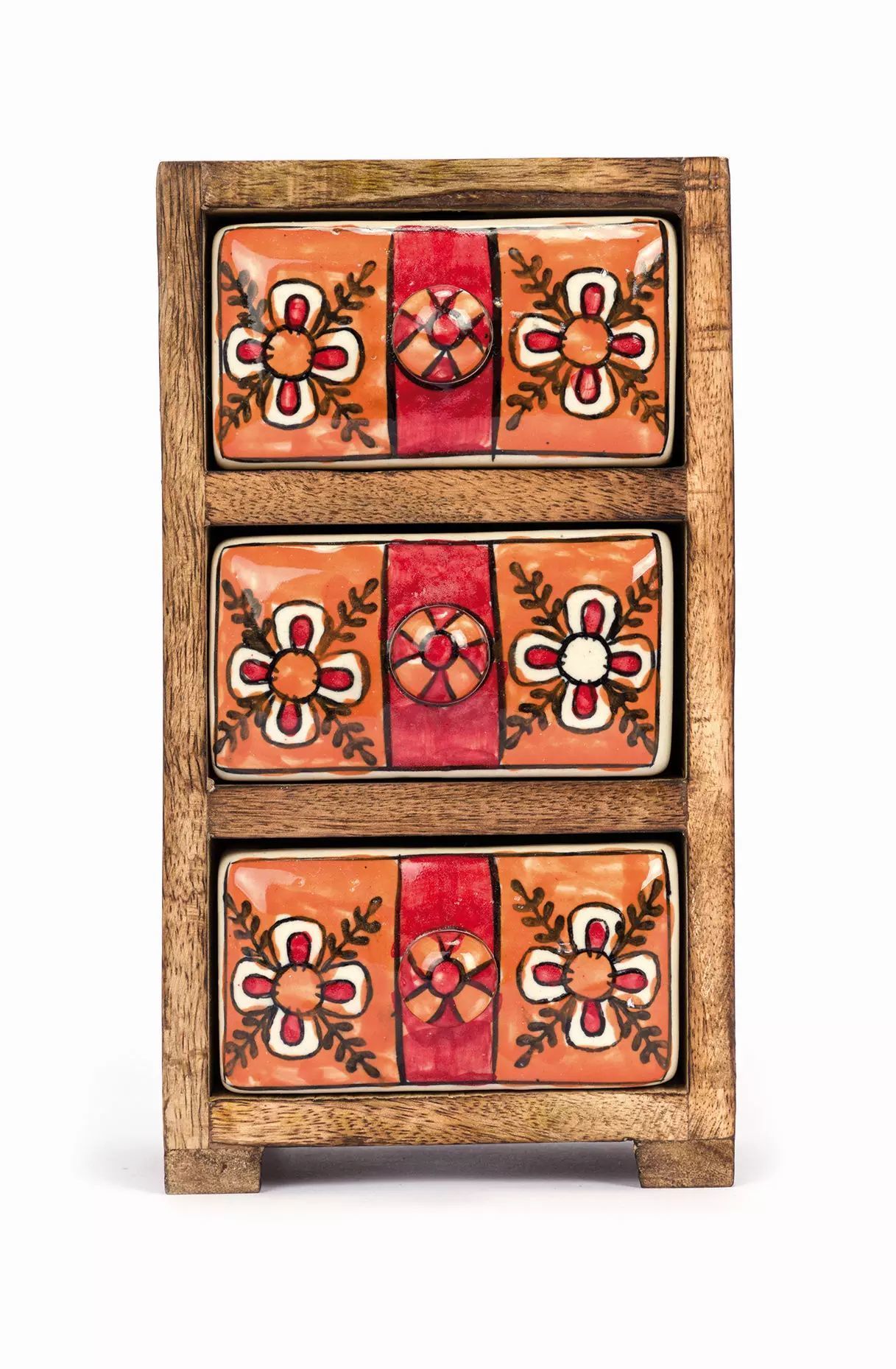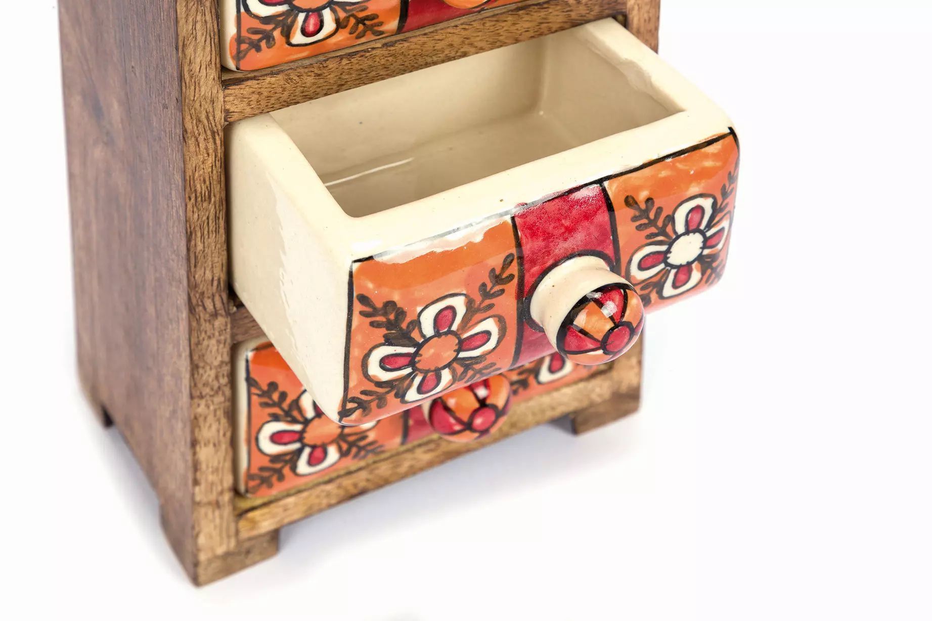 3 Schübe, Mango-Holz und Keramik,