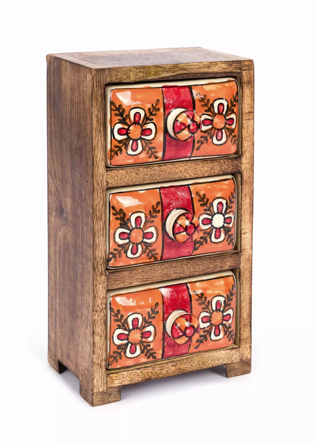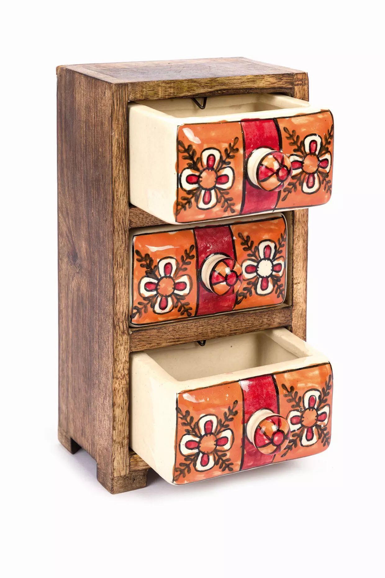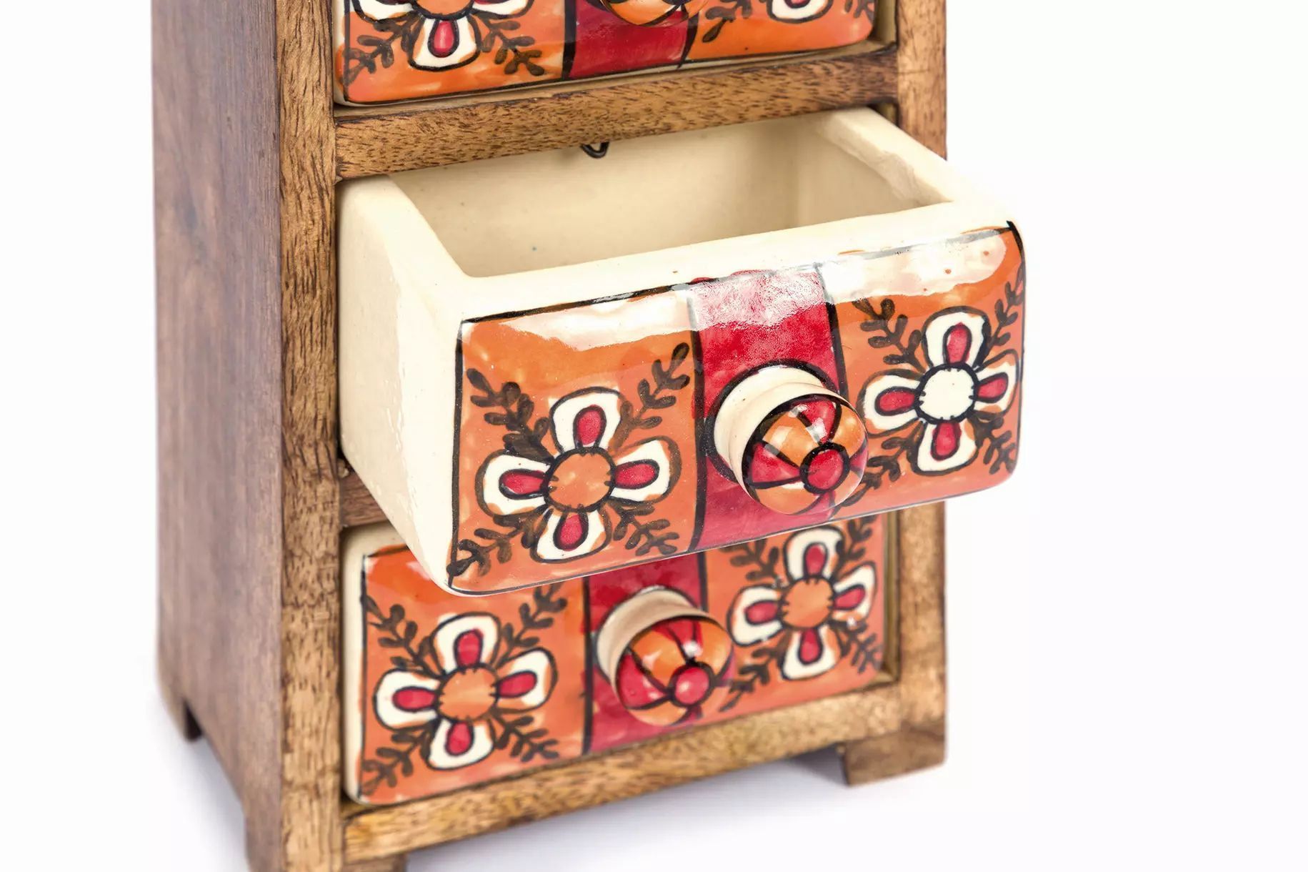 3 Schübe, Mango-Holz und Keramik,
